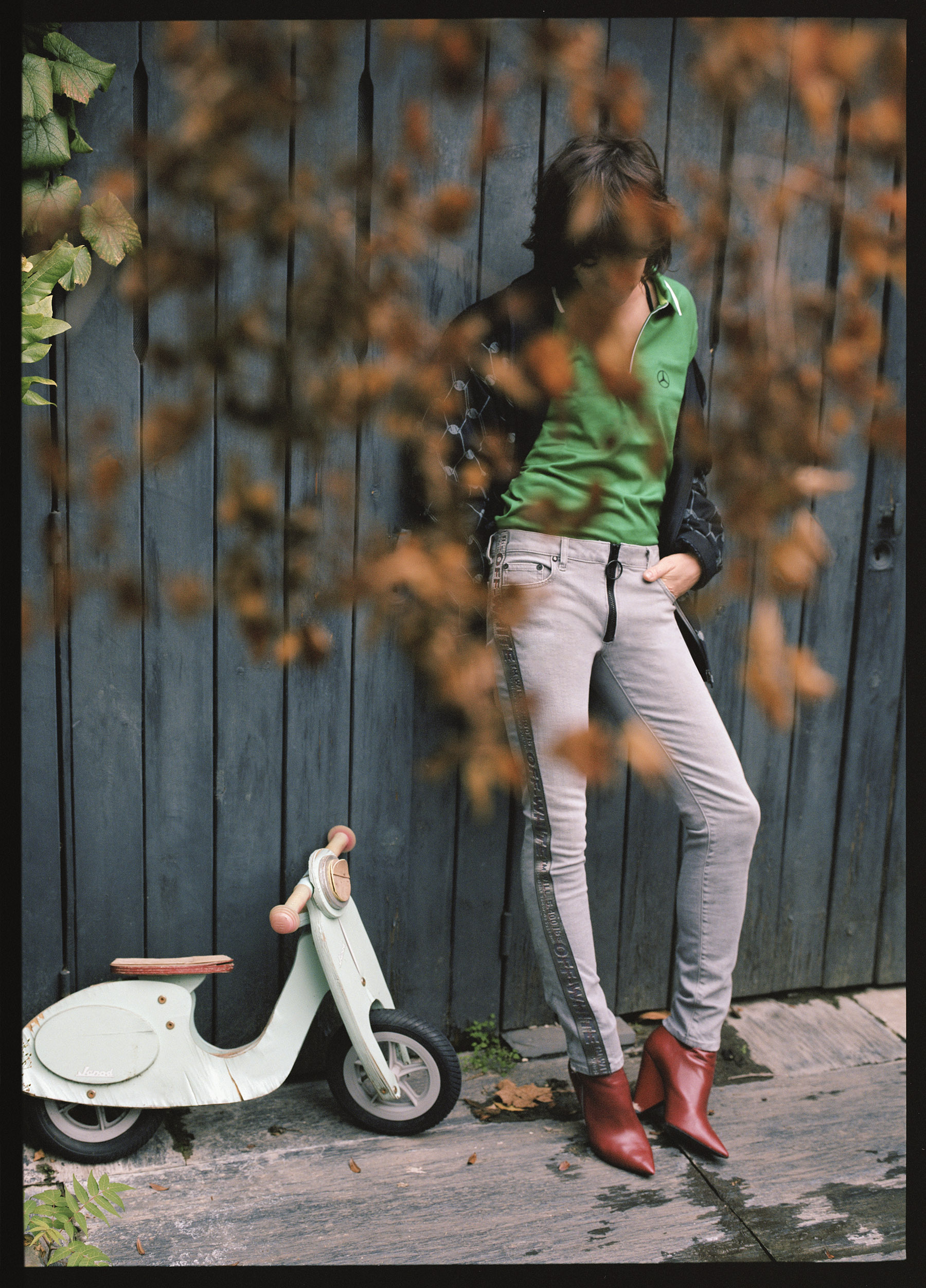 Charlotte porte un blouson Avoc, un polo BOSS Green x Mercedes Benz,