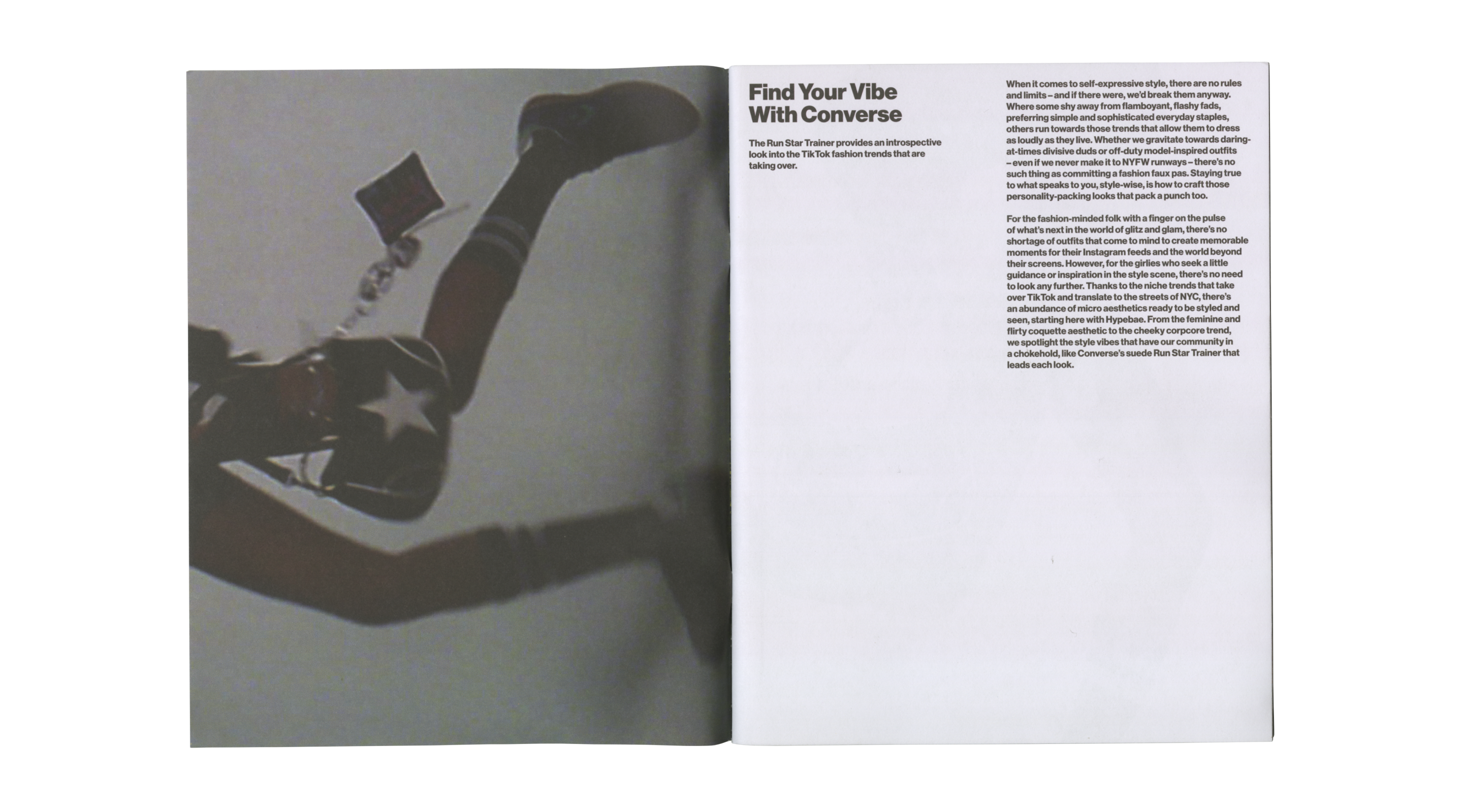 In collaboration with Converse, Hypebae curated an interactive zine, identifying internet micro-trends, to spotlight the recent release of the brand’s new sneaker silhouette, the Run Star Trainer.