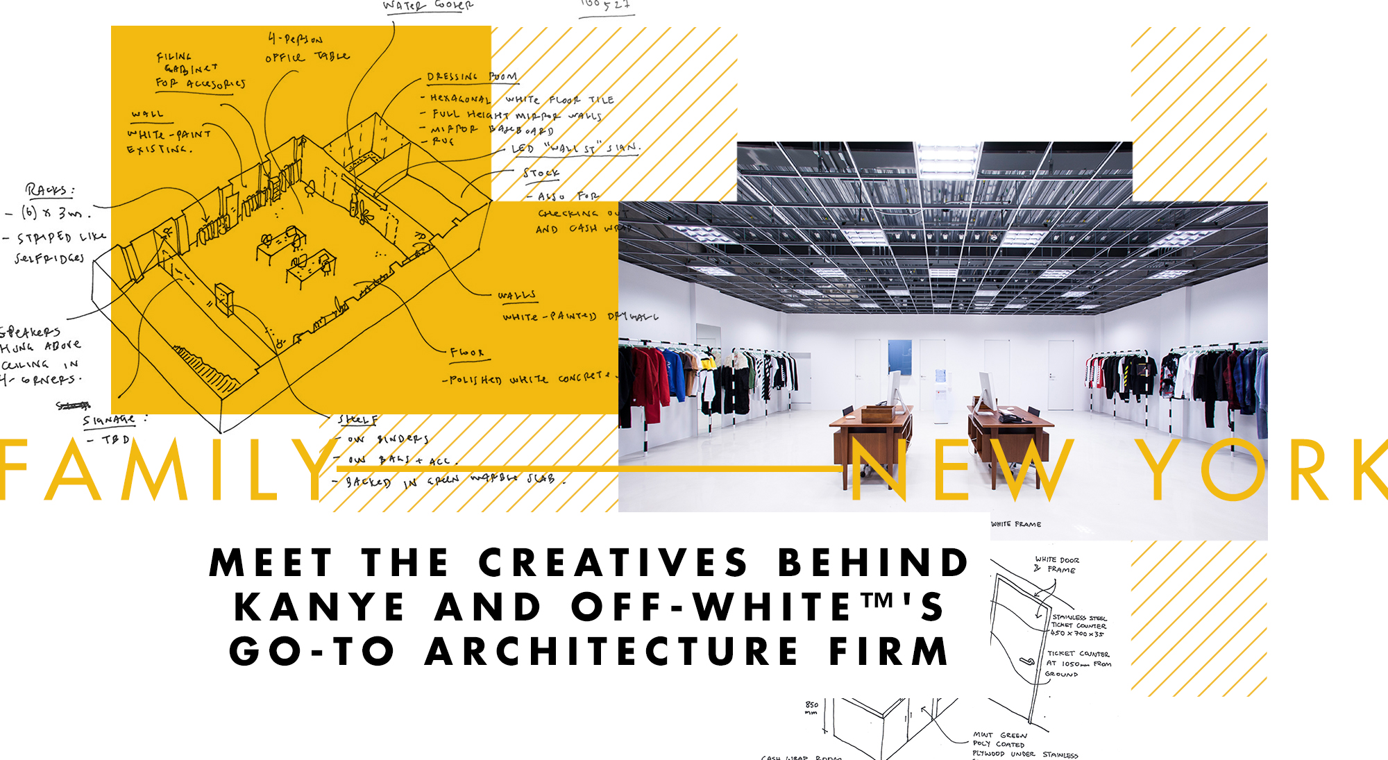 Since the opening of OFF-WHITE’s Hong Kong flagship in 2014, Family has designed two more stores for OFF-WHITE in Singapore and Tokyo, both of which are intended as reactions to their immediate context. OFF-WHITE Singapore is a monasterial chamber with a bamboo grove – a reprieve from the cosmetic glamor surrounding it on the high-end shopping street of Orchard Road. Conversely, the Tokyo branch, otherwise known as “SOMETHING & ASSOCIATES,” is a hypernormal depiction of a corporate Wall Street environment, inspired simply by the business-like character of the building it is housed in.