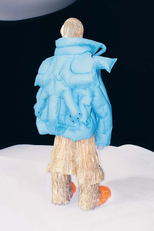 Presented at Stazione Centrale in Milan, designer Craig Green amplified the inspirations for his collection with extreme, sculptural and architectural structures resembling machines made to fly. Projecting the concept of the power of combined effort and embracing the possibilities of working in unison with nature's elements.