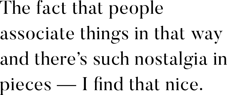 Burt: A lot of our research is basically us going around England where there’s so many charity shops and antique stores. There’s just so many second-hand items and, if you keep your eyes open, there’s ideas everywhere — and you don’t have to spend a lot of money.