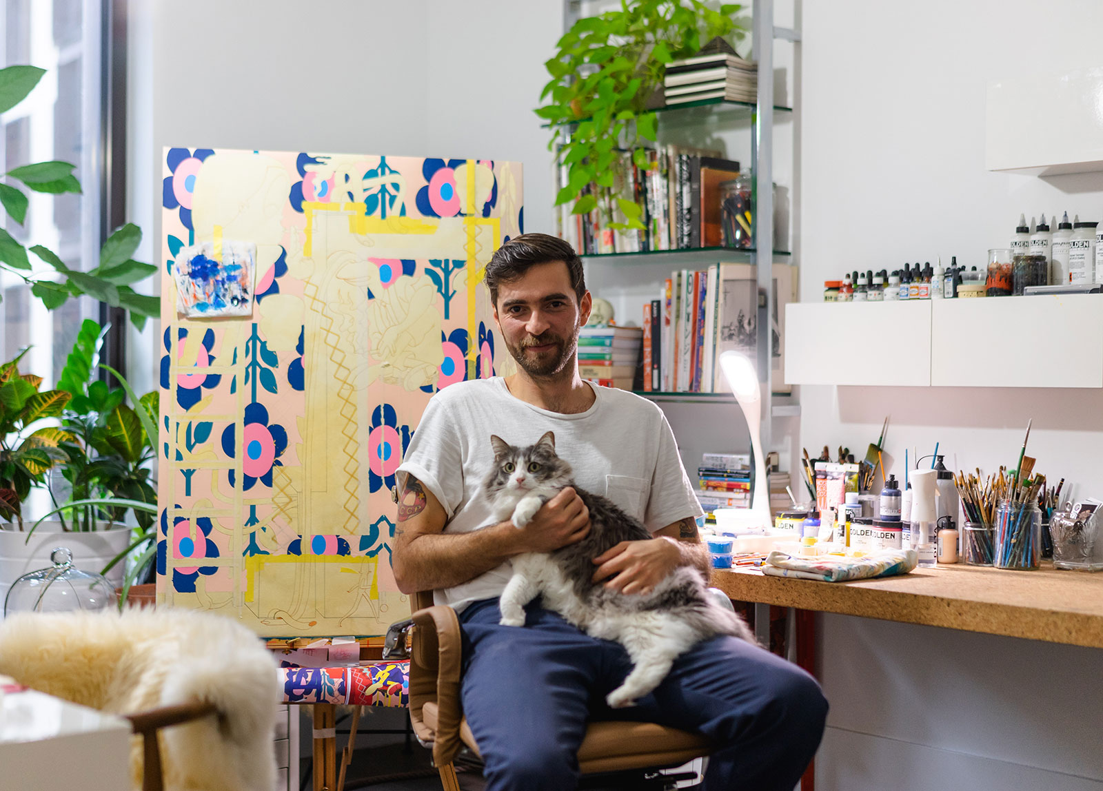 I've been in this studio for nine years. I first moved to New York back in 1999. I had a cheap apartment in the Lower East Side and I was painting in my bedroom for a number of years and waiting tables and bartending. Before I came to New York, I was a biology major. I graduated college and decided to be an artist. I had people telling me the place to go was New York. 20 years later, here I am.