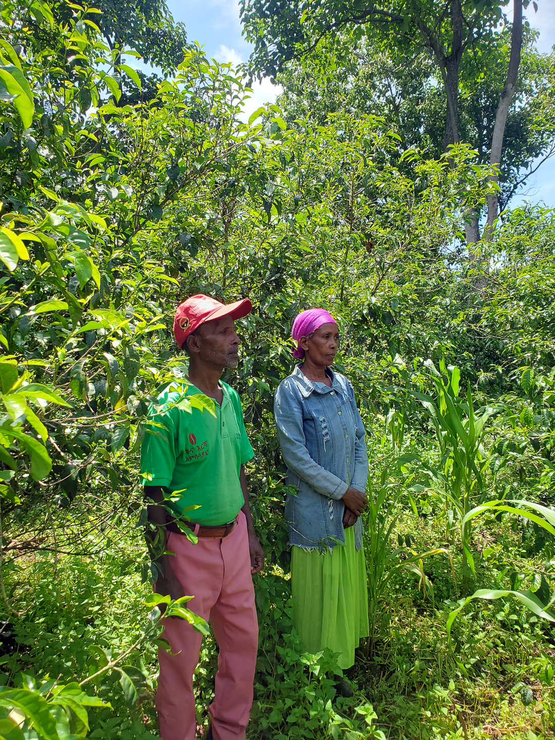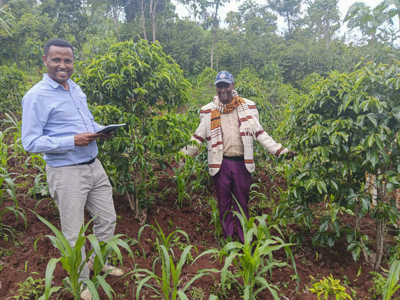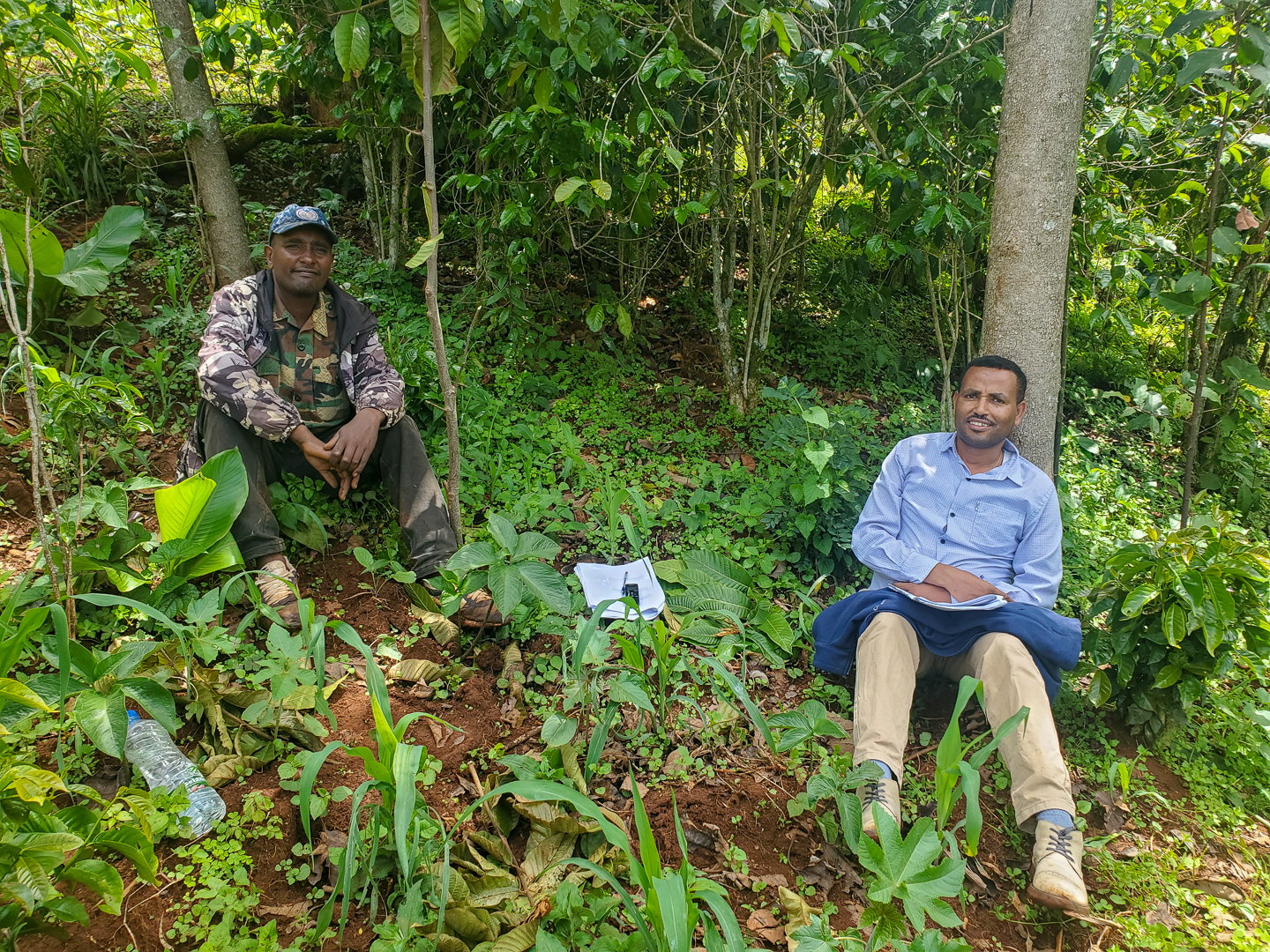Mr. Nigusse Sisay with Yalew Mekonnen (Research officer-IFPRI) checking stumped coffee trees