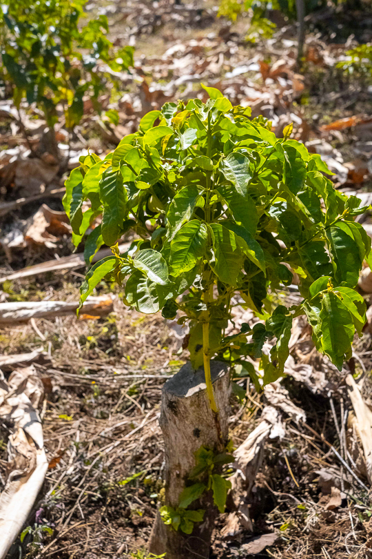 Stumping can lead to a meaningful increase in coffee yields after two to three years. It also produces bigger, higher-quality coffee cherries than old coffee trees that have not been stumped.