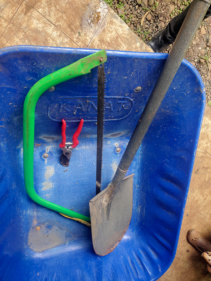 Coffee farmers who successfully completed the Coffee Farm College program were awarded certificates by TNS. Some farmers also received farm tools and promotional apparel from TNS as an incentive. Based on their active participation in the training program and implementation of its practices, these farmers were awarded wheelbarrows, shovels, saws, and scissors.