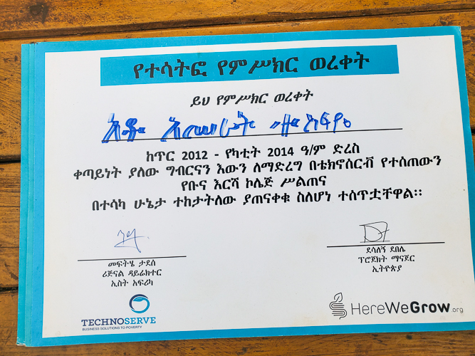 The use of chemical fertilizers is limited in Ethiopia—instead, farmers use manure to improve soil fertility. The TNS training expands their knowledge by teaching them how to prepare compost to produce their organic coffee.