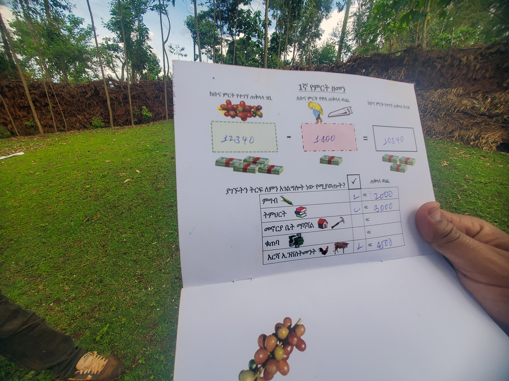 TNS trains farmers on recordkeeping and financial planning. The program produced a simple, user-friendly recordkeeping booklet written in the local language, which is distributed to coffee farmers to record both costs and income from coffee production.