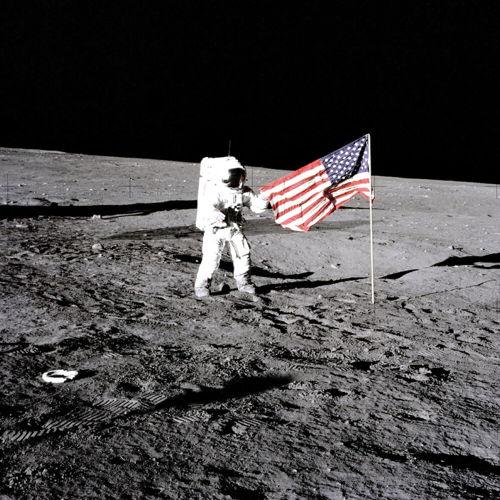 The first humans land on the moon.