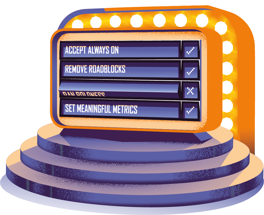 As leaders enter a new year, those following this strategy are clarifying their priorities. What are the top-line metrics on which the whole company needs to deliver? The handful of goals could include operational performance, innovation, or sales numbers. “If what people are working on isn’t one of the priorities, they probably shouldn’t be working on it,” says Maxwell-Grant. Firms can jump-start these priorities with a town-hall meeting every 10 weeks, highlighting a singular priority. Once set, the tactic is to activate at scale, which happens when leaders and managers focus on executing strategy. “That is their job, going forward,” says Maxwell-Grant.