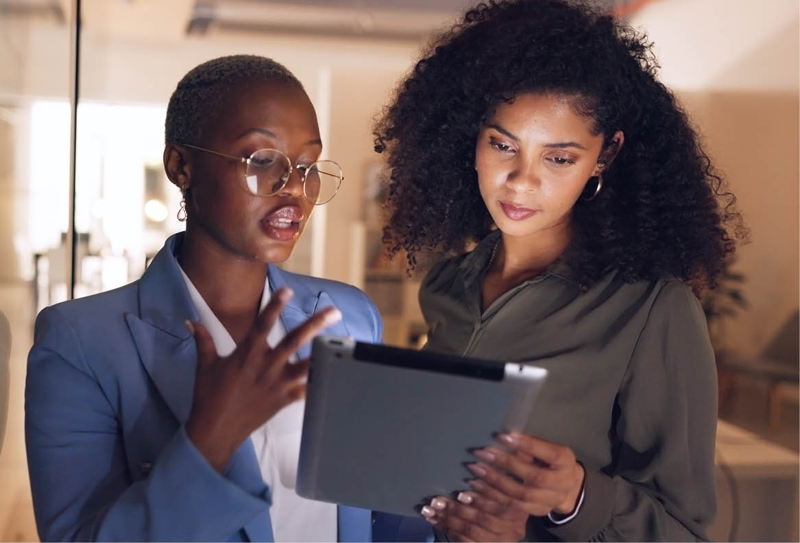 Business helps shape and realize the transformation vision, crafting a strategic path that aligns with industry standards and operational goals, emphasizing robust governance and data-driven decision-making.