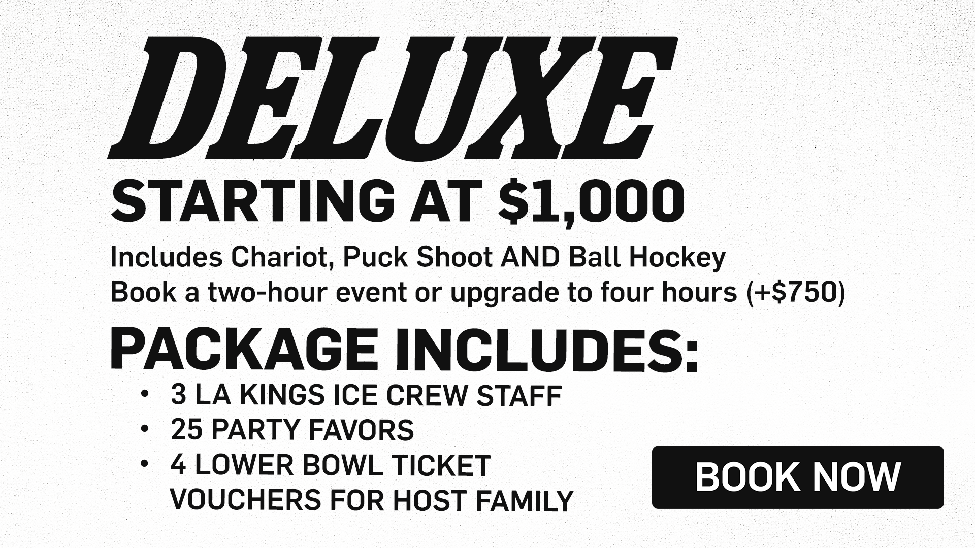 Bring the thrill and excitement of Kings hockey to your event with our portable ball hockey rink! Our coaches can facilitate fun drills and games to help rookies or scrimmages for experienced hockey players.