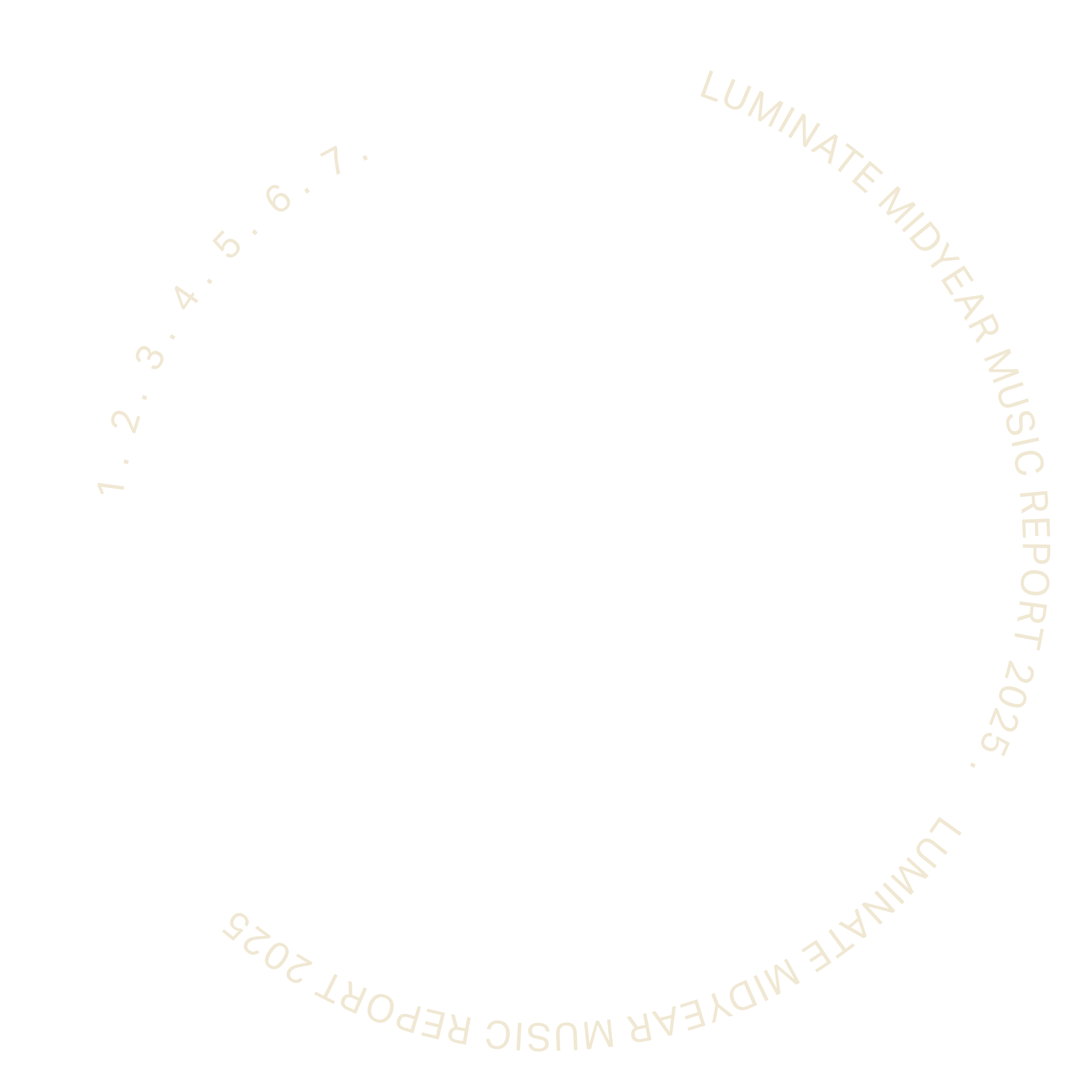 As the integration of Luminate’s data across music, film and television continues, we are uncovering more and more examples of transmedia impact. The transmedia opportunity represents the strategic advantage of telling a unified story, or brand building, across multiple distinct media platforms, with each uniquely contributing to the overall narrative experience. Among the many instances observed in 2025, Led Zeppelin and LISA stand out. The documentary Becoming Led Zeppelin, streaming on Netflix, emerged as the year’s top music documentary so far, driving a sustained 23% increase in the band’s streaming over four months. Similarly, Thai artist LISA recently starred as Mook in Season 3 of HBO’s The White Lotus. The show’s release coincided with LISA’s Alter Ego album launch, introducing her to new audiences as her TV role attracted fans to the series, particularly those interested in travel — a central theme of The White Lotus.Finally, we turn to AI. Luminate data indicates that one in three U.S. music listeners express being “somewhat” or “very” comfortable with the use of generative AI to create song instrumentals, with younger audiences showing even higher comfort levels. While 44% report discomfort with generative AI creating new original songs performed by an AI voice, listeners of certain genres, such as EDM and K-pop, are notably more open to this practice. Currently, the emergence of artists including The Velvet Sundown and Aventhis marks a pivotal and inherently controversial moment in the long history of technology’s influence on music. Unlike previous technological advancements that primarily augmented human artistry or transformed distribution, these acts appear to be fundamentally AI generated, directly challenging the very definition of artistry itself. The historical trajectory of technology in music has predominantly been a narrative of amplification and accessibility, from recording devices preserving sound to digital audio workstations empowering creators and democratizing listening. However, the significant streaming activity of artists such as The Velvet Sundown and Aventhis signifies a new frontier where technology transcends its role as a mere tool to become a direct competitor. Their very presence challenges existing economic models, legal frameworks and the foundational definitions of artistry within the music industry. Their rise necessitates a critical examination of ownership, compensation, authenticity and the future of human creativity in an increasingly AI-driven world. And the ongoing debate surrounding them encompasses both the rapidly improving quality of their music and also the profound existential and economic questions they pose for human artists. Look to Luminate in the coming months to provide more clarity on the scale and impact of AI-generated music on the industry.We often say that Luminate delivers facts, not opinions. While some of the observations in this report lean into analysis, we appreciate you taking the time to review these insights. We’re confident they’ll prove valuable as you navigate the data-driven music industry in the months ahead. Be sure to let us know.