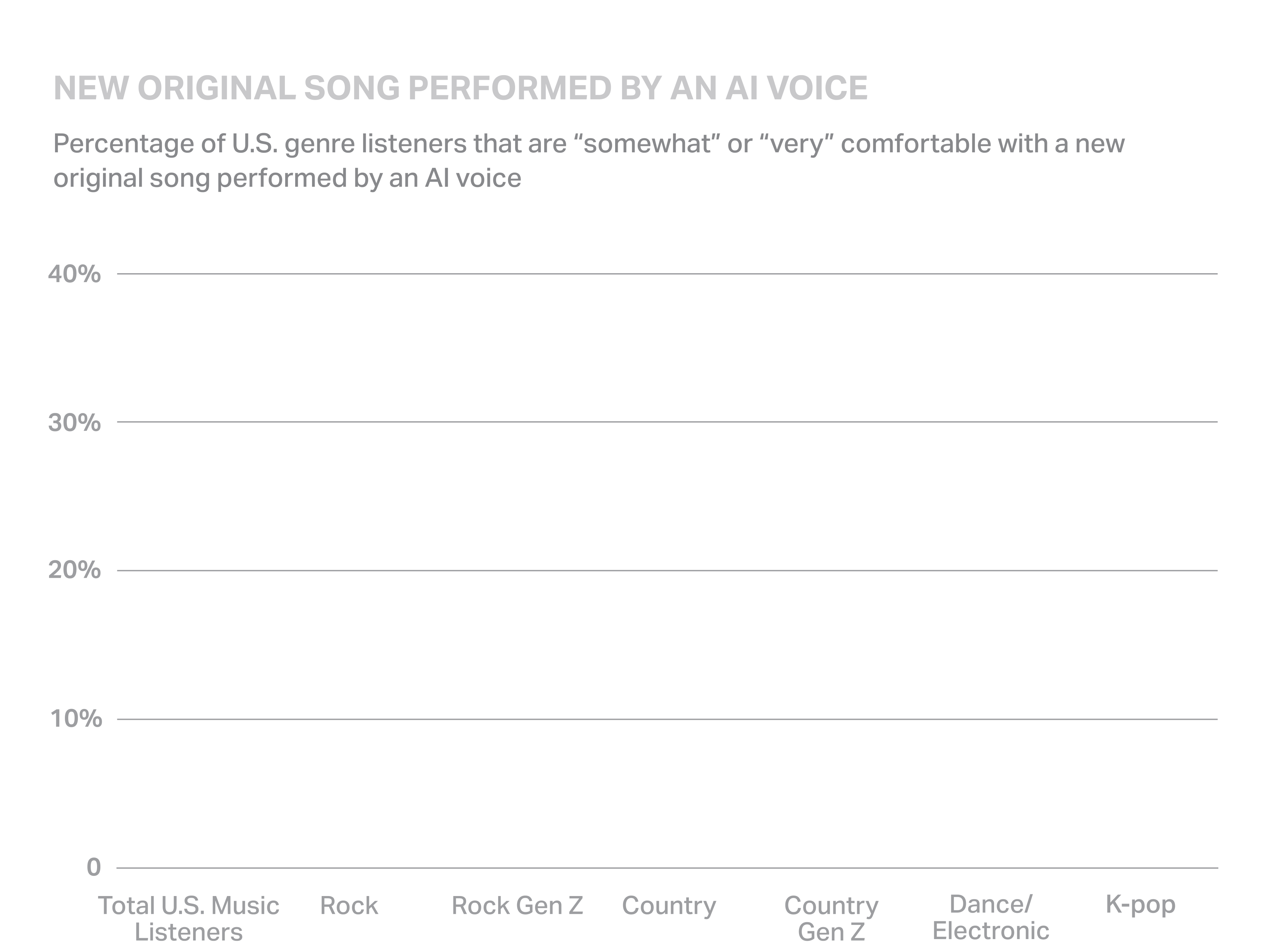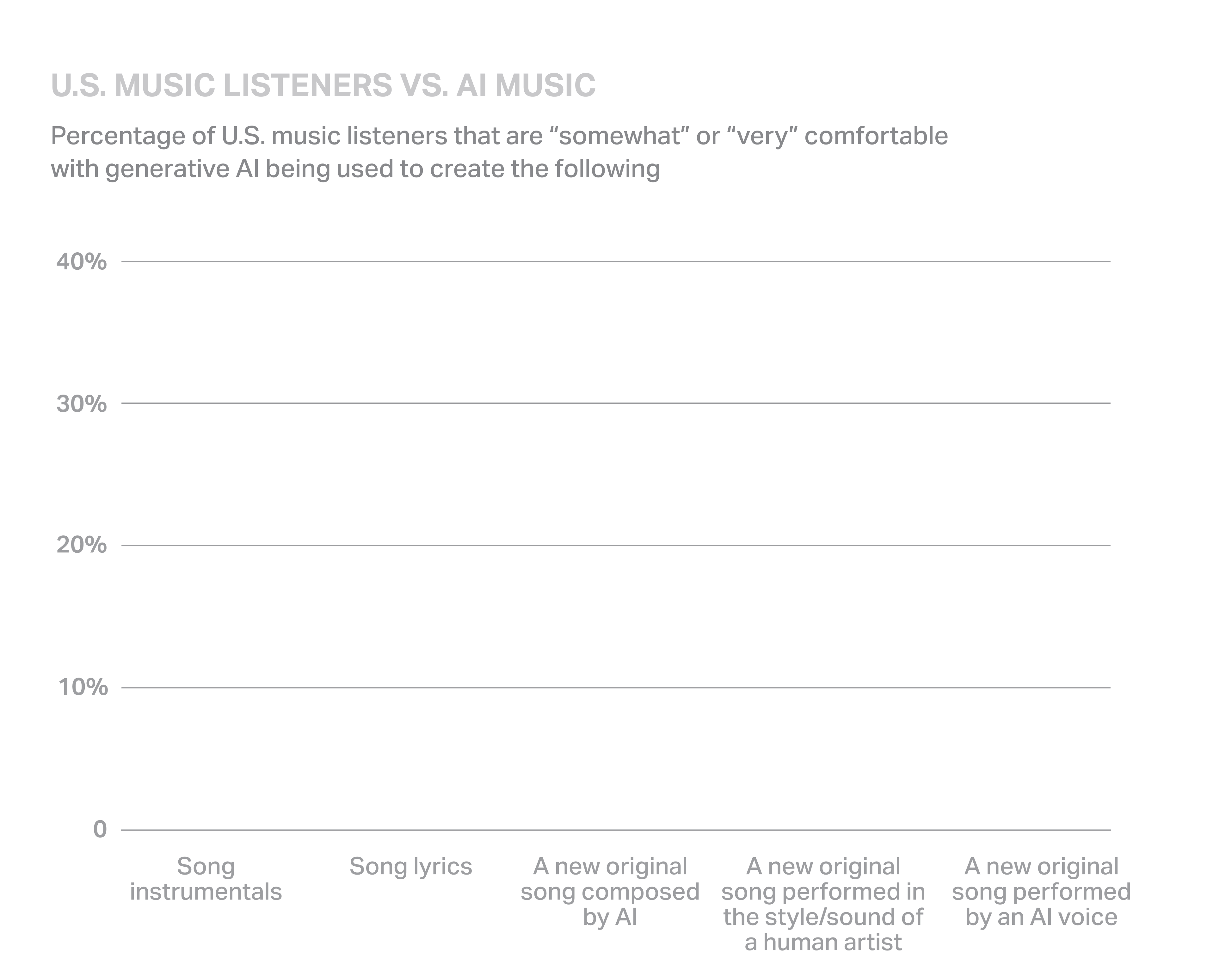 1 in 3 U.S. music listeners report being “somewhat” or “very” comfortable with the use of generative AI to create song instrumentals, with younger music listeners showing higher