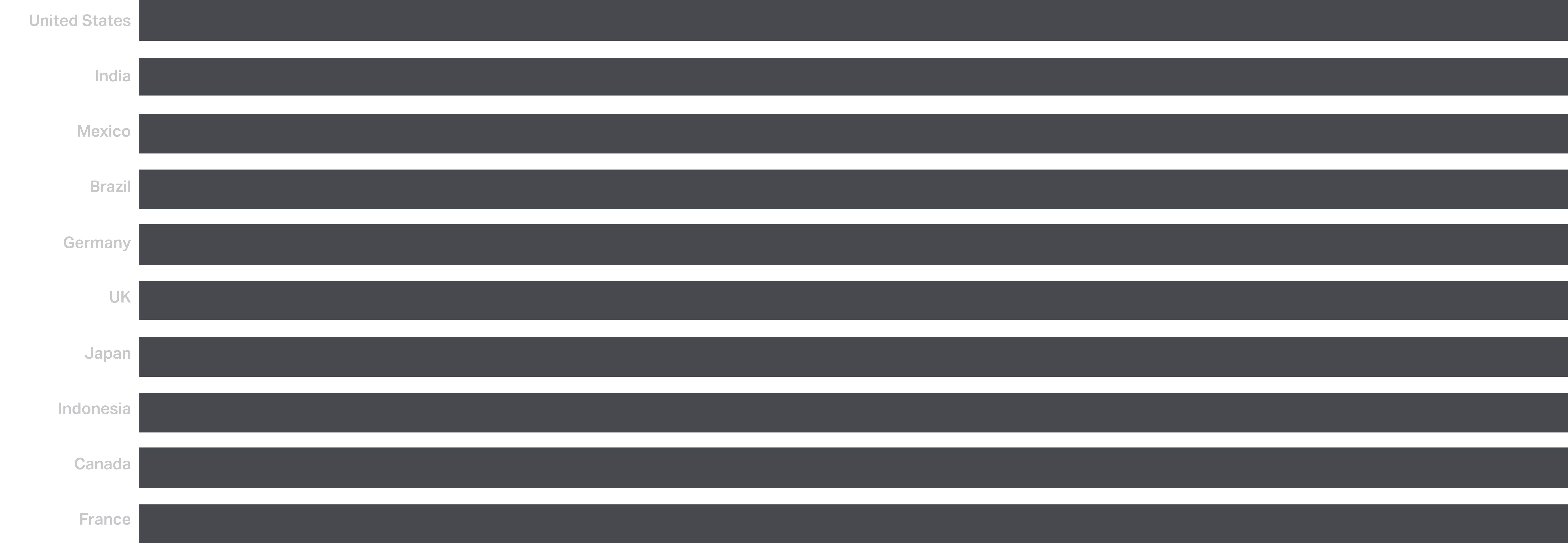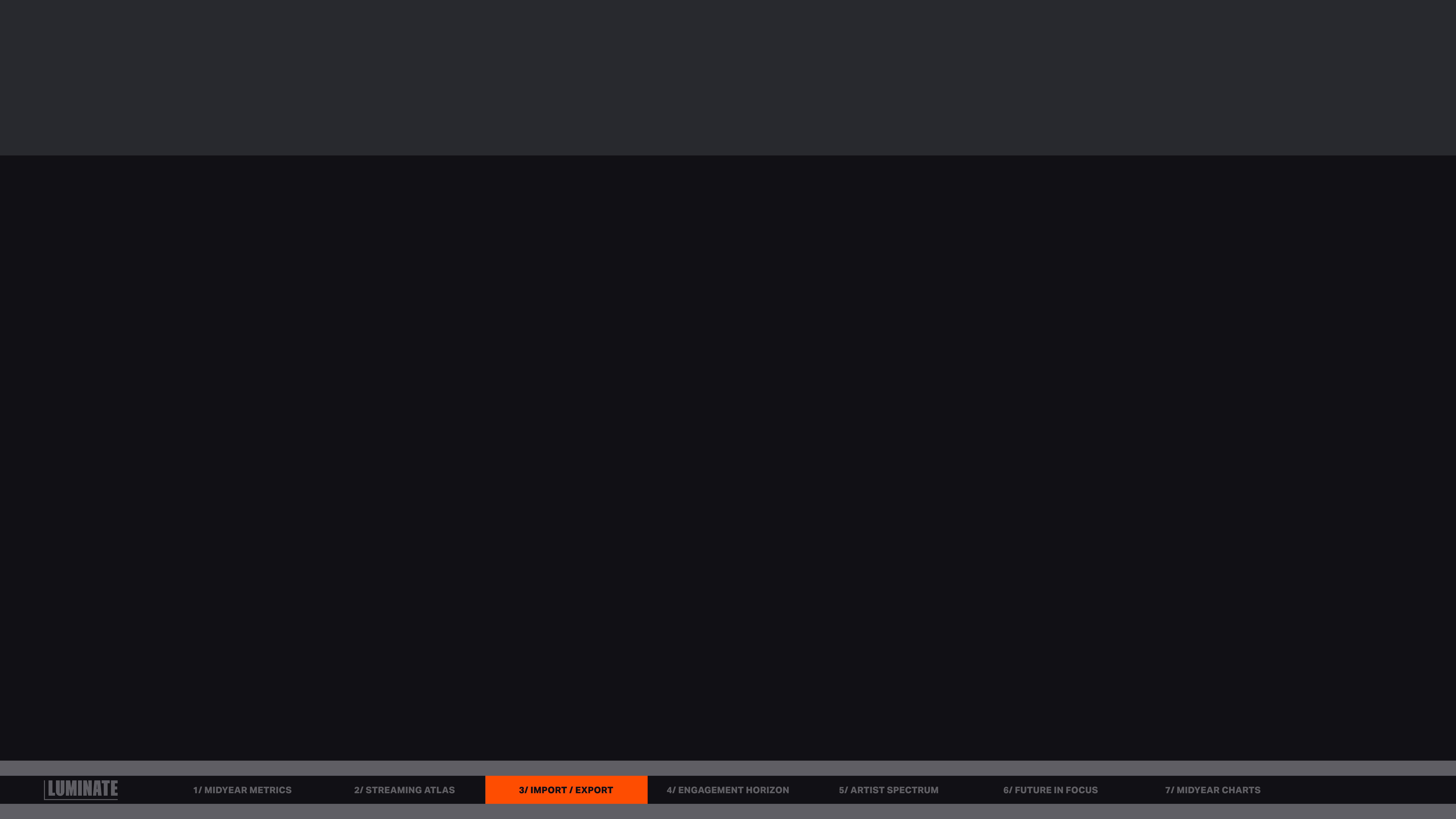 Luminate Export Power Rankings evaluate a country’s ability to export recorded music globally. This score is a combination of four data points: the rank of artists in each country based on Total On-Demand Streaming and Country of Origin; the number of countries importing music from a given export country; the streaming size of importing countries; and the number of artists per export country reaching international audiences.