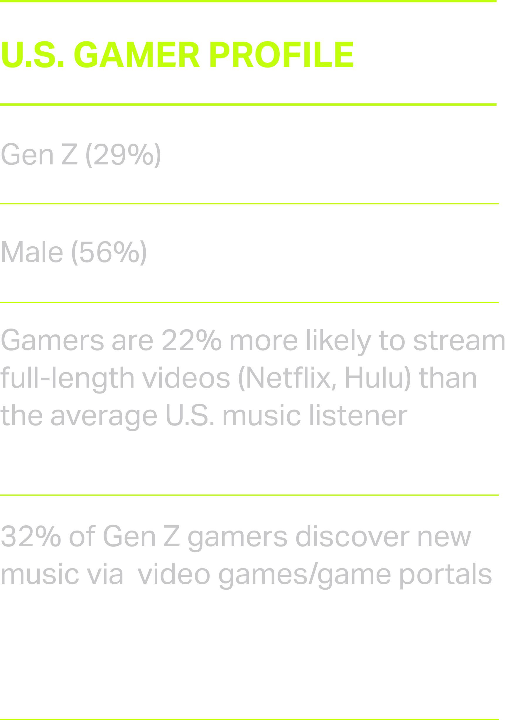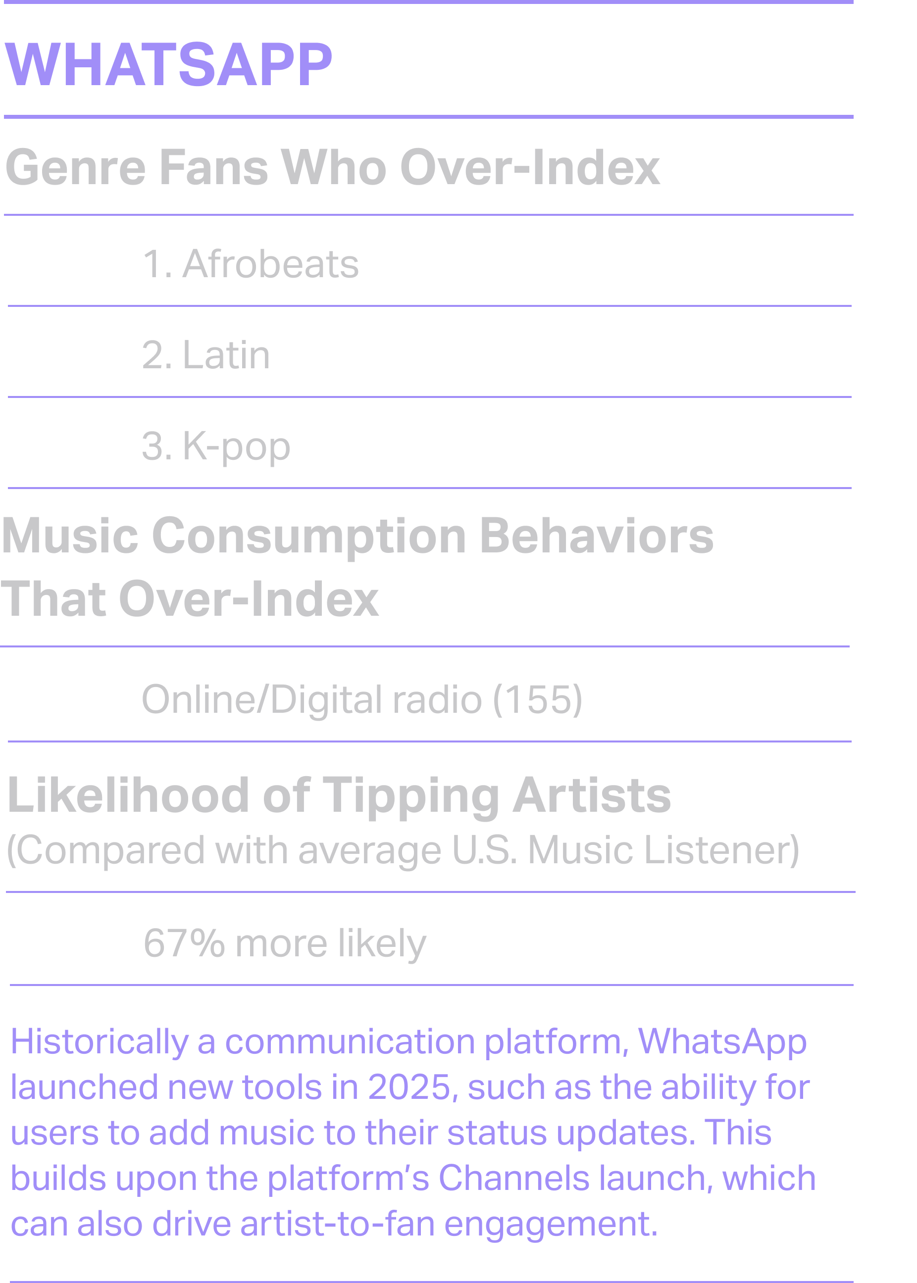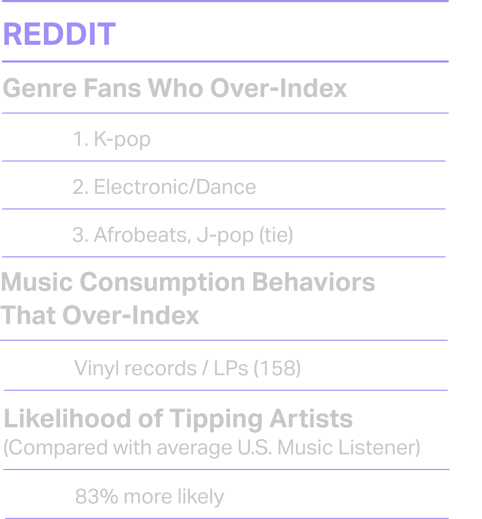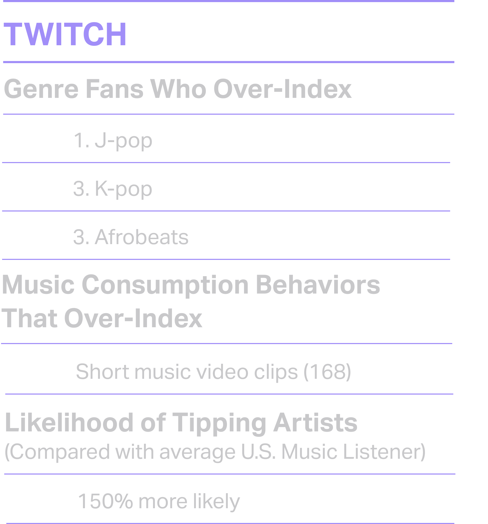 NOTE: COMPARED WITH AVERAGE U.S. MUSIC LISTENER / SOURCE: LUMINATE INSIGHTS ARTIST + GENRE TRACKER (U.S.)