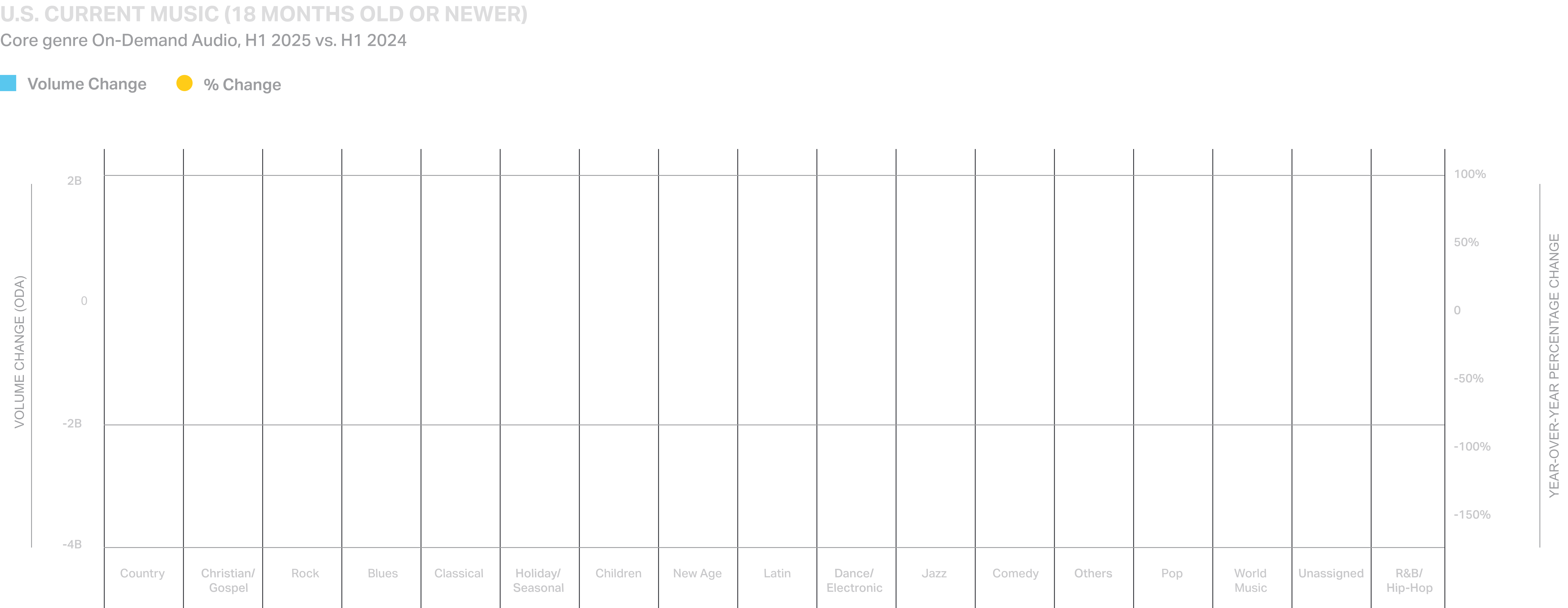When looking only at U.S. On-Demand Audio streaming of Current music (identified as tracks that are 18 months old or newer), this category declined 3.3% in volume compared with the