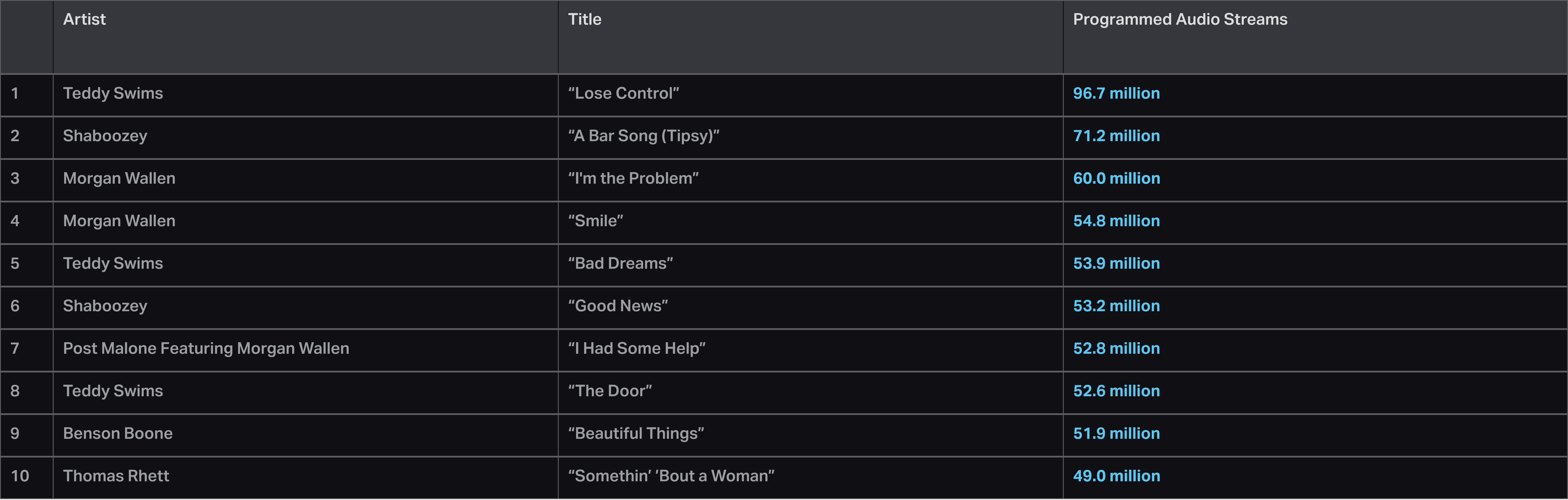 Ranked by Overall Streaming Volume (Total On-Demand Audio + Video)