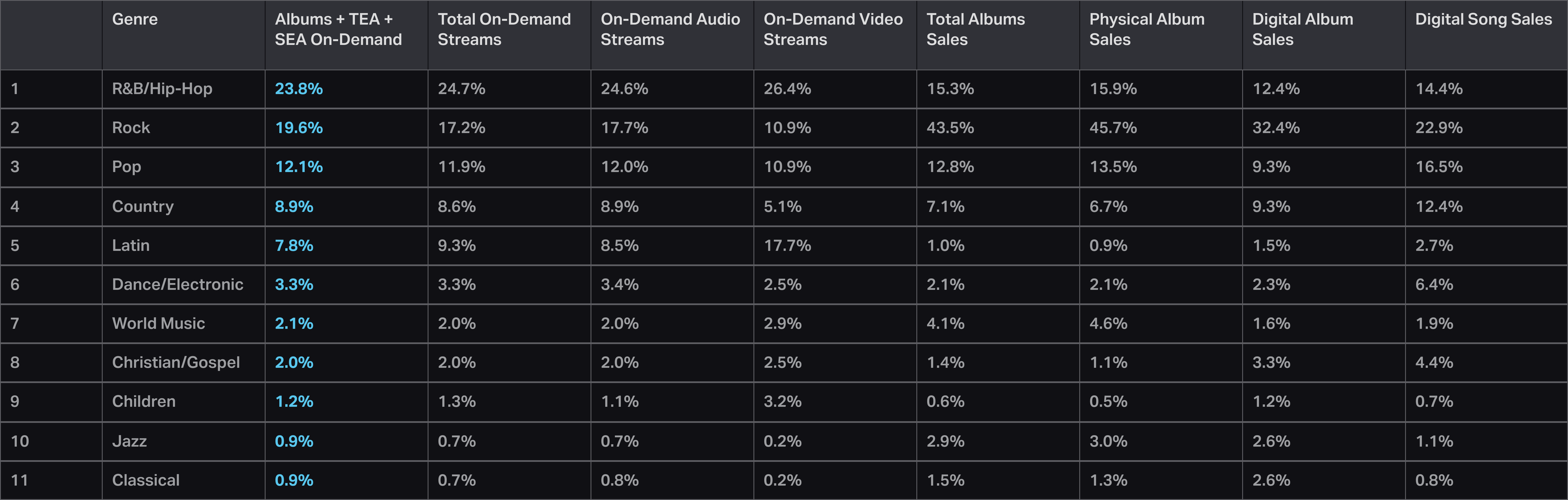 SOURCE: LUMINATE MUSIC CONSUMPTION DATA
