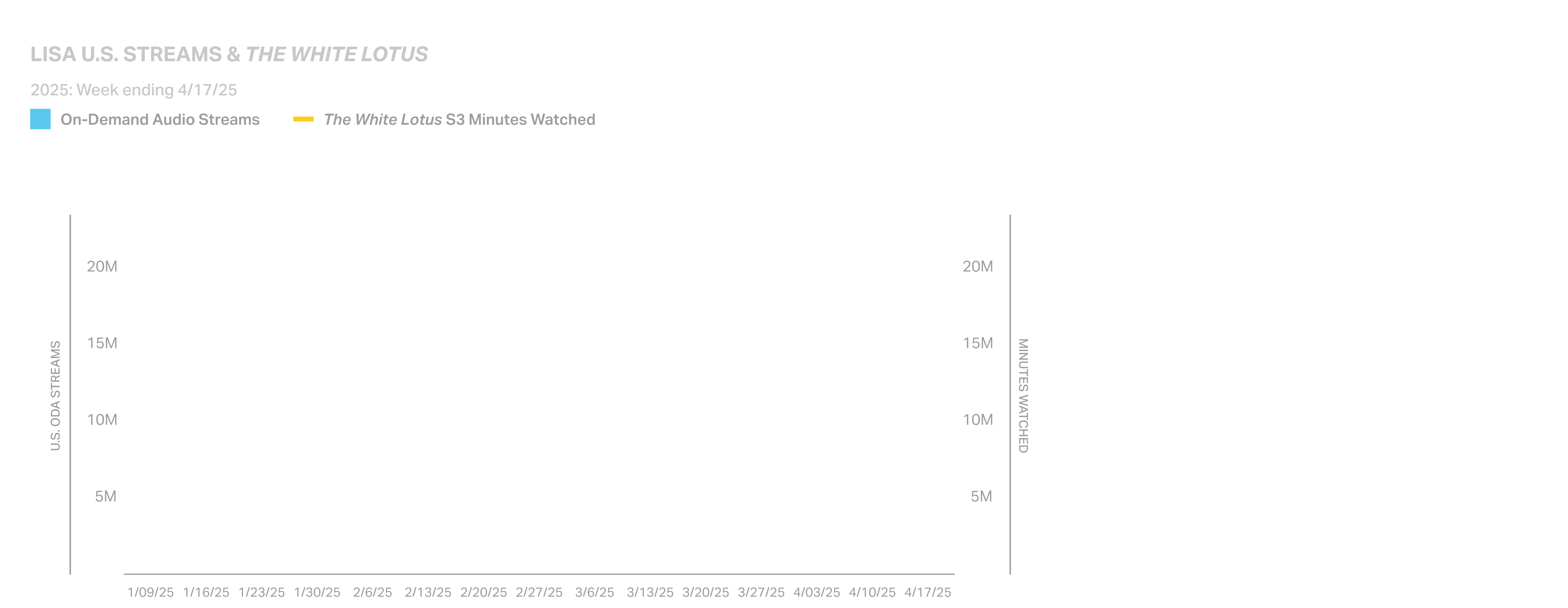 Thai artist LISA (also a member of K-pop group BLACKPINK) starred as Mook in season 3 of HBO’s The White Lotus. The season’s release window coincided with the release period for LISA’s album Alter Ego and helped introduce her to new audiences, while her presence in the show brought fans to the series who are particularly interested in travel — a key component of The White Lotus.