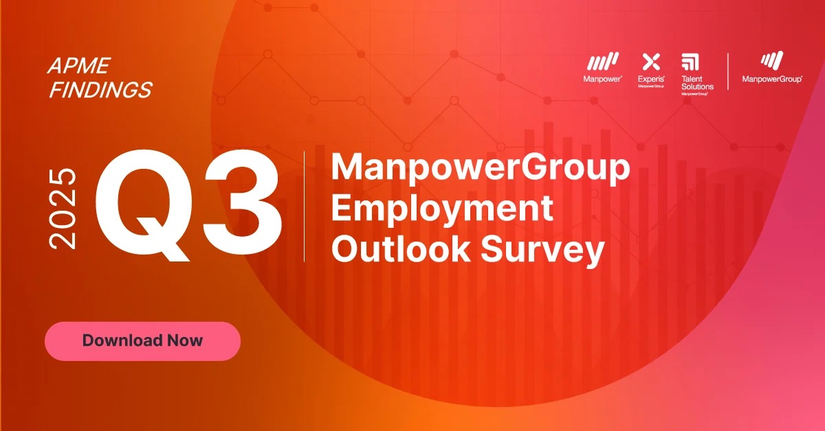 ManpowerGroup đã khảo sát 12.434 nhà tuyển dụng tại 10 quốc gia và vùng lãnh thổ thuộc khu vực Châu Á – Thái Bình Dương & Trung Đông (APME) về kế hoạch tuyển dụng trong Quý 3/2025. Tải thông cáo báo chí, infographic và báo cáo đầy đủ để tìm hiểu thêm về kết quả khảo sát cũng như khám phá sâu hơn các xu hướng và phát hiện chính tại khu vực APME.