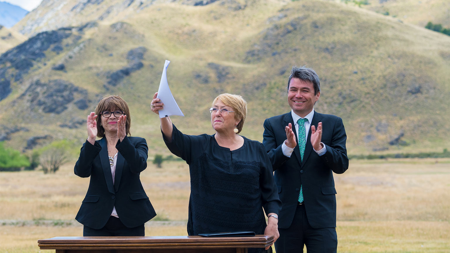 President Michelle Bachelet signs the decrees to add ten million acres to Chile’s National Park System. Photo: Linde Waidhofer
