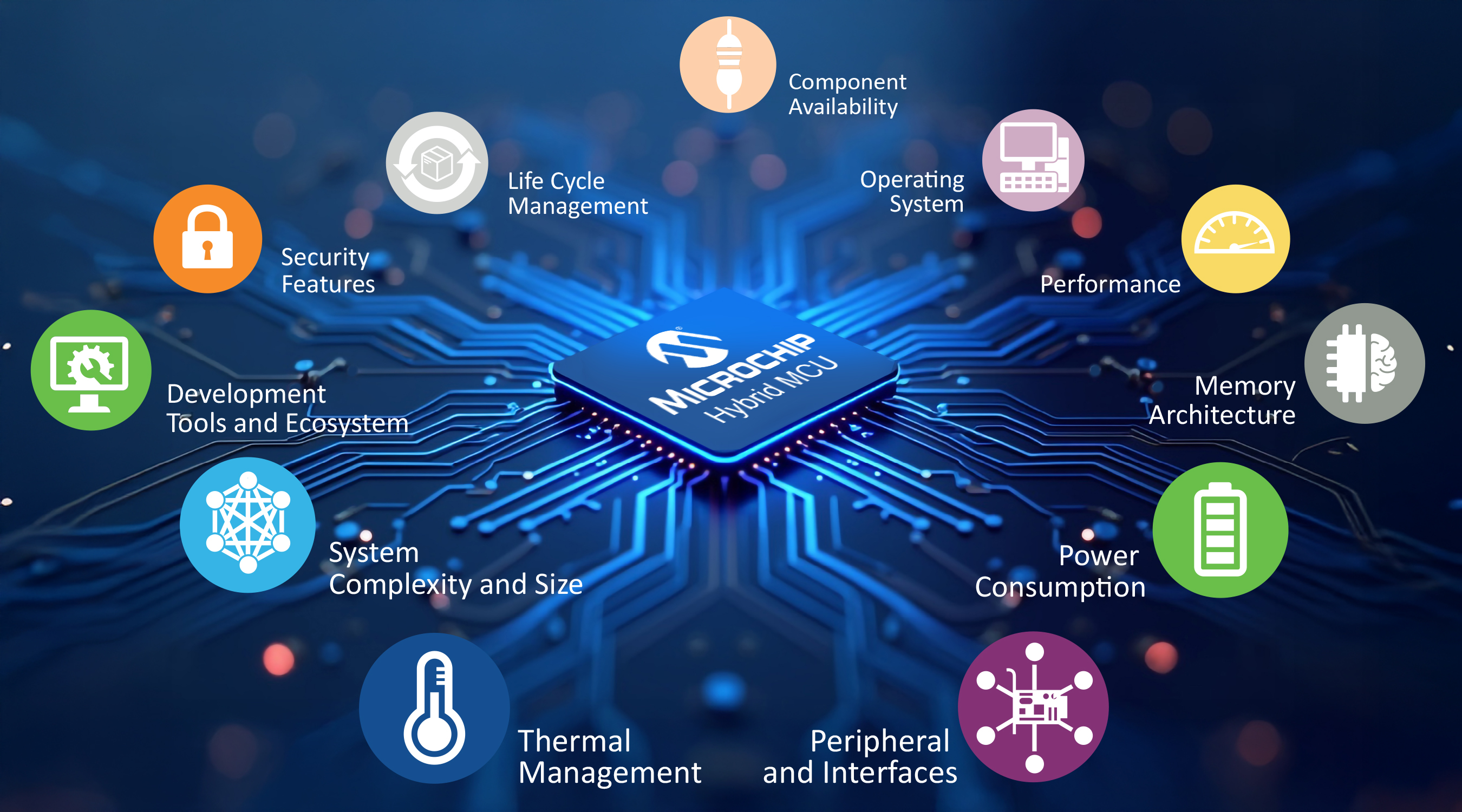 Hybrid MCUs come with advanced security features such as secure boot, secure key storage, tamper detection, Physically Unclonable Functions (PUFs), TRNG and hardware encryption such as AES and SHA.