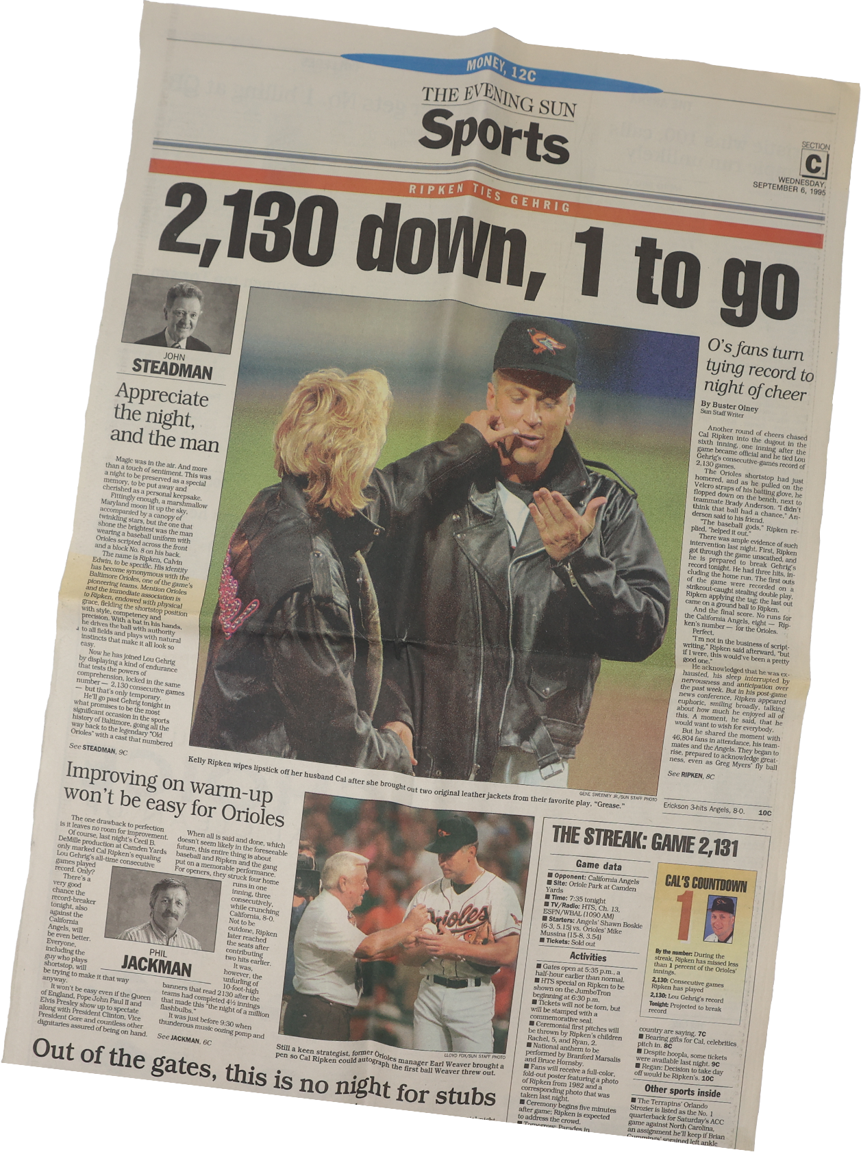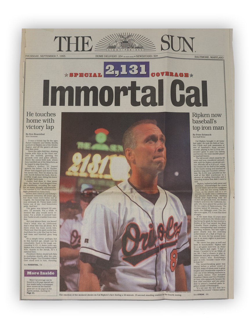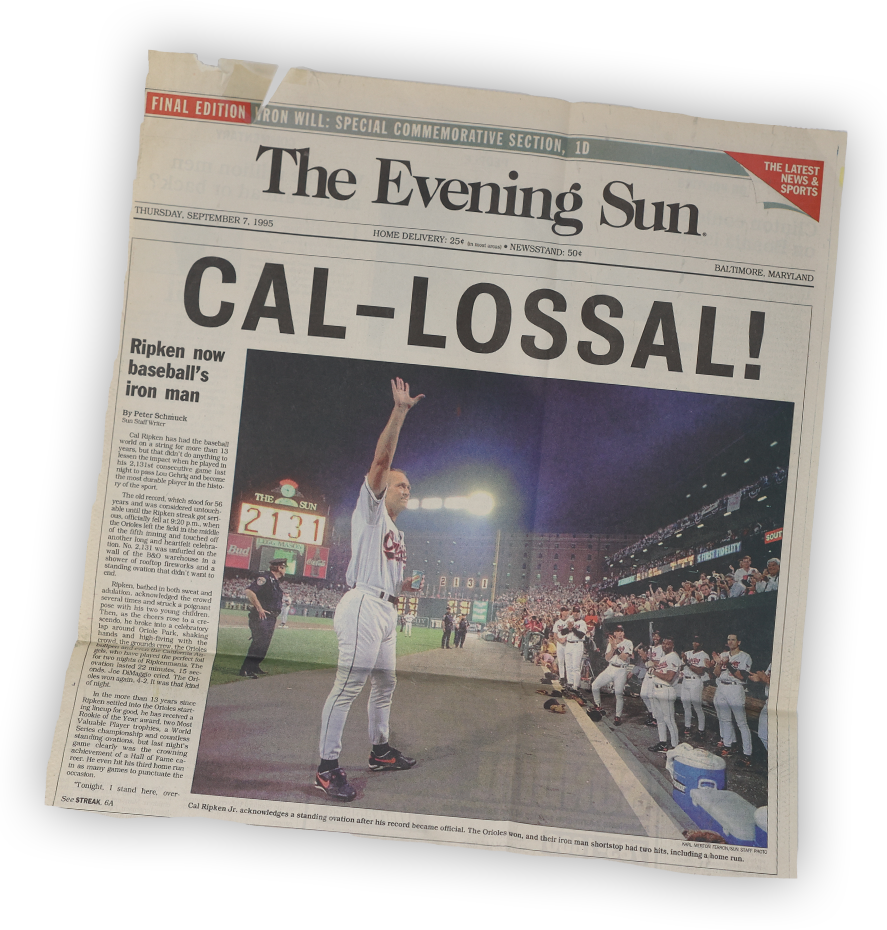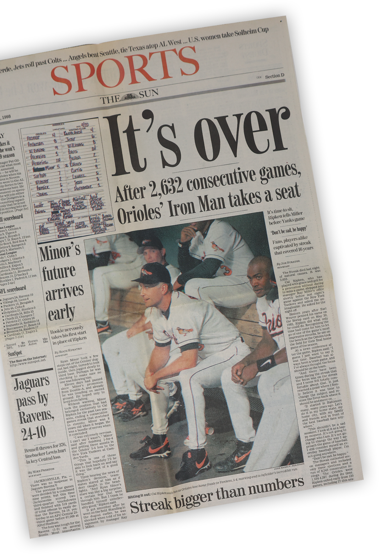 With each trial, Cal was able to have the career he wanted and end it on his terms. On Sept. 20, 1998, Cal removed himself from the lineup 30 minutes before the Orioles' final home game vs. New York, ending his consecutive game streak at 2,632 games - 501 longer than Lou Gehrig’s previous record.