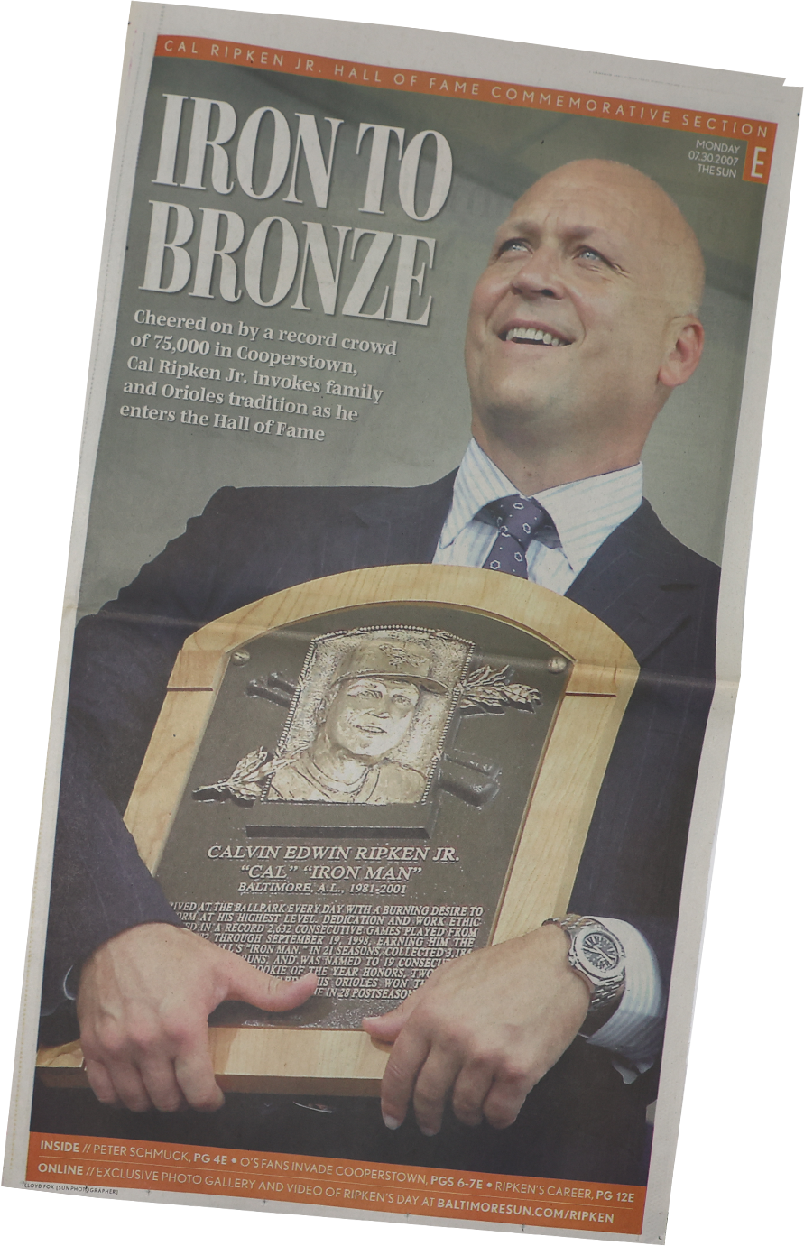 Receiving a 98.53 percent of votes in his first Hall of Fame ballot, Cal was at the time the 3rd highest in history (now 6th). He was inducted during ceremonies on July 29, 2007 in Cooperstown, NY. Cal is the 6th and latest player whose plaque shows him in an Orioles cap.