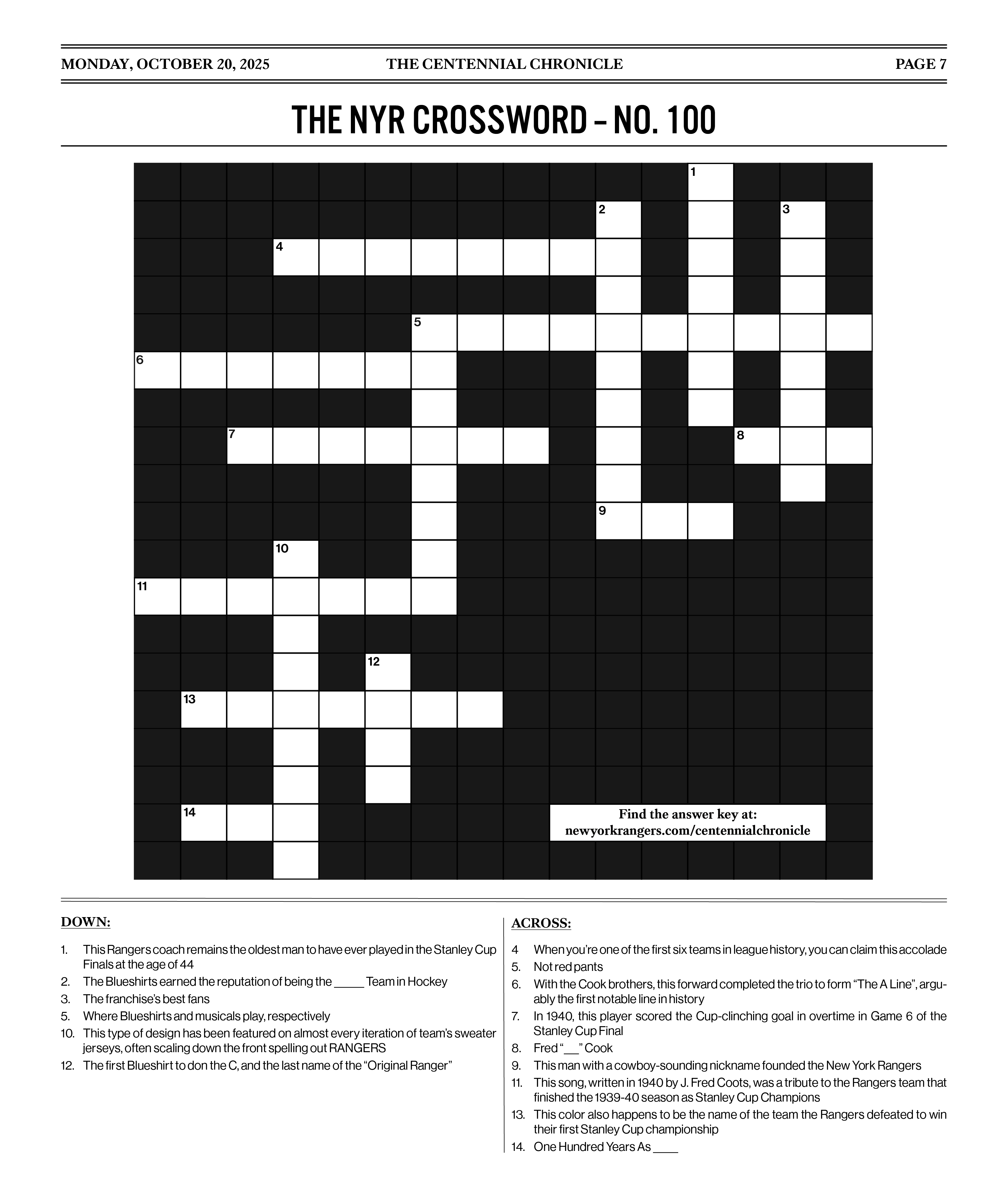 THE NYR CROSSWORD - NO. 100