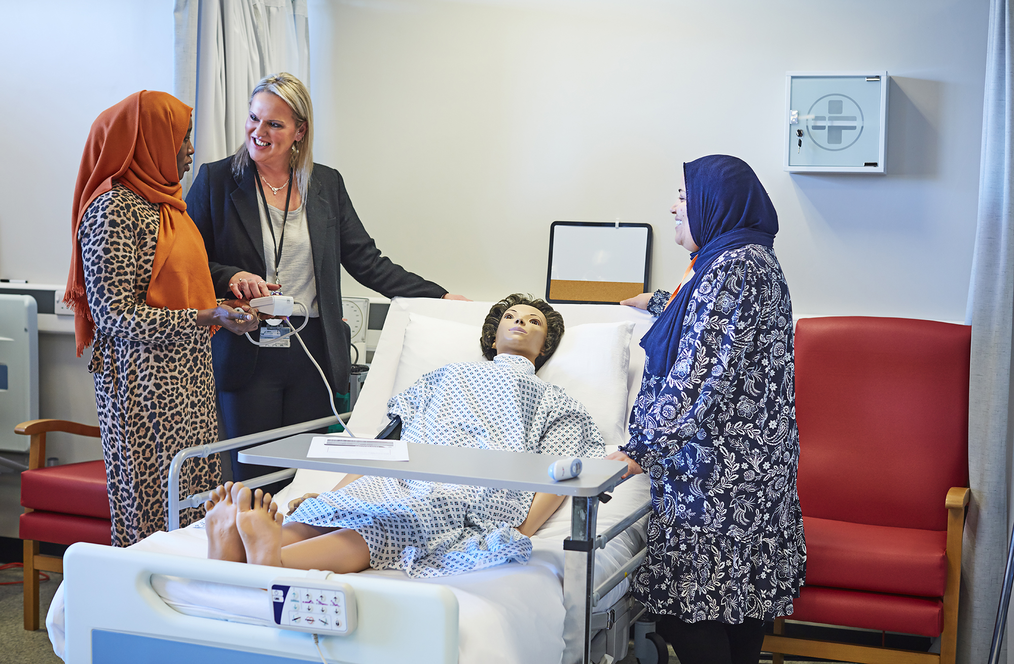 Ward round: Denise and her students pay a visit to one of their ‘patients’