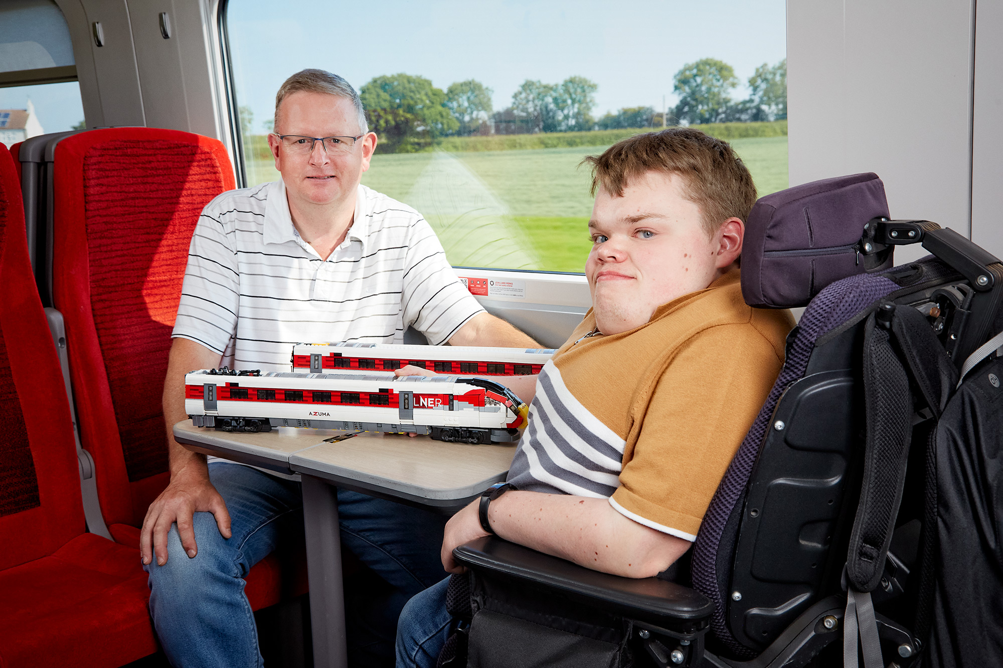 And the Azuma is definitely the place to conjure up brilliant design in comfort, which perfectly suited Lewis’s circumstances. As a wheelchair user with the rare bone disorder Morquio syndrome, it’s important for him to have space to manoeuvre, as well as have access to the passenger assistance offered on the UK’s train routes.