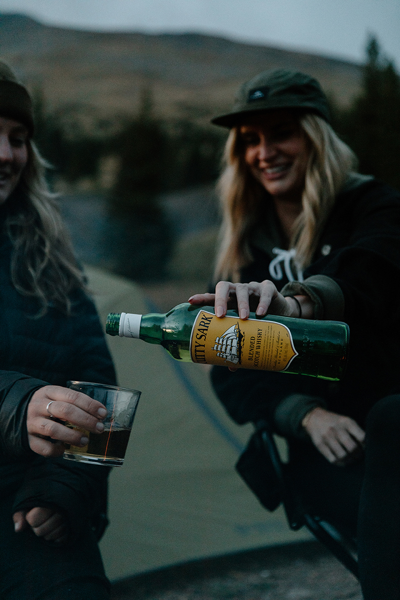 When it comes to setting up your campsite, small tweaks go a long way in taking your scene from just OK to the envy of all the other campers. People will hang out by the fire longer if there’s a comfortable place to sit, so bring a nice camp chair (or even a camp loveseat) and a puffy camping blanket. Solar-powered lights and lanterns keep the party going after the sun sets, boosting vibes and adding crucial ambience. Factor in extras to ensure a fun evening with friends, like a Bluetooth speaker, camp table, and a simple game to play (try Farkle, all you need are six dice). Don’t skimp on the basics either: you’ll want a well-planned camp meal and a well-packed cooler full of the best mixers for camp cocktails (think: soda, lemon, and simple syrup for the most options with Cutty Sark Blended Scotch Whisky).