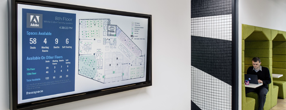 Freespace digital signage allows for information displays in your common areas, outside of meeting rooms and lobby areas. Additonally, it is included in the Return to Workspace App helping employees navigate wherever and whenever.