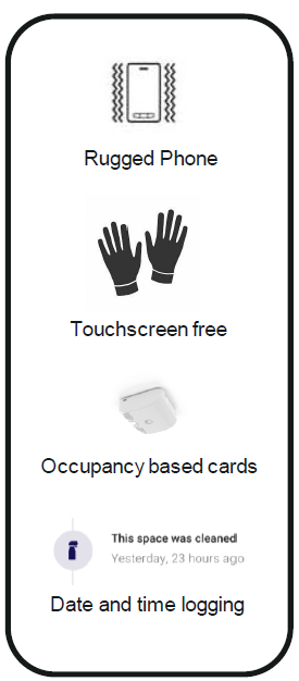 Pre-configured, rugged handheld-device ready to use out of the box to ensure workspaces have been cleaned and sanitized after each use.