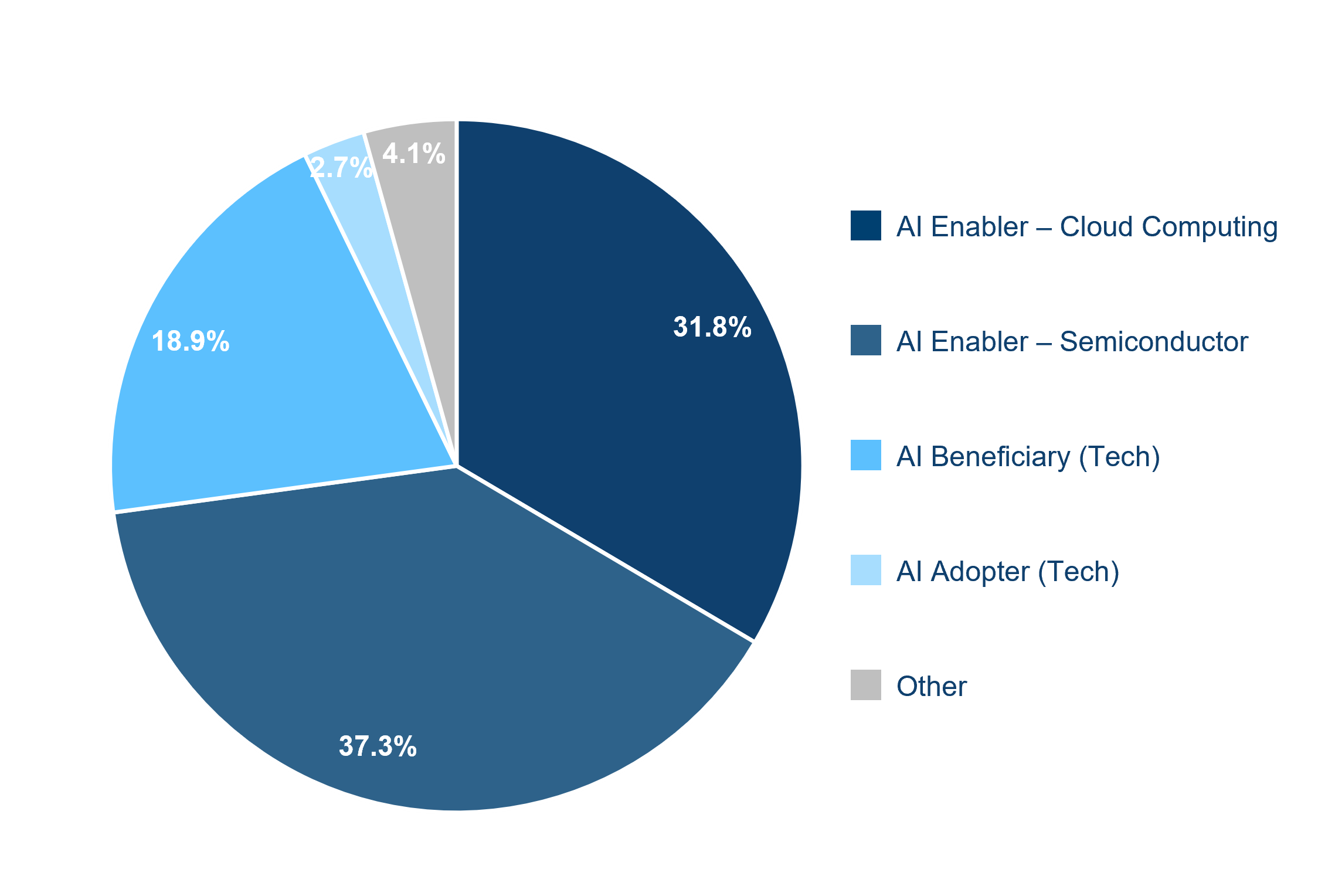 We look for technology companies exposed to structural, secular trends, applying or enabling AI which have long-term growth potential as disrupters. From there, we construct a diversified portfolio to manage risk