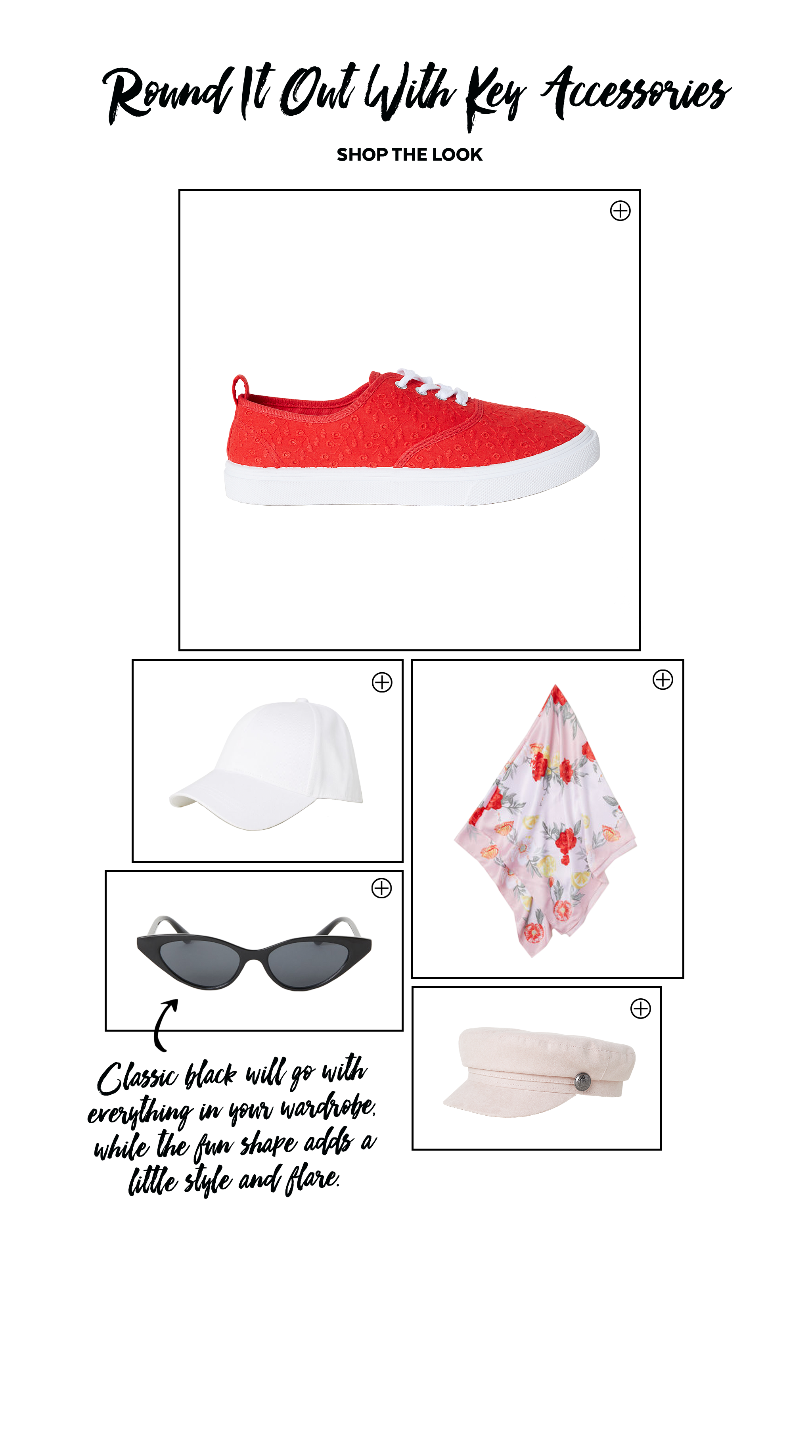 Remember when we said stick to a color palette? That rule should apply to your accessories as well! A simple pair of canvas sneakers will be your closest’s best friend when you’re running late to class, but the eye-catching red color goes with everything you own.