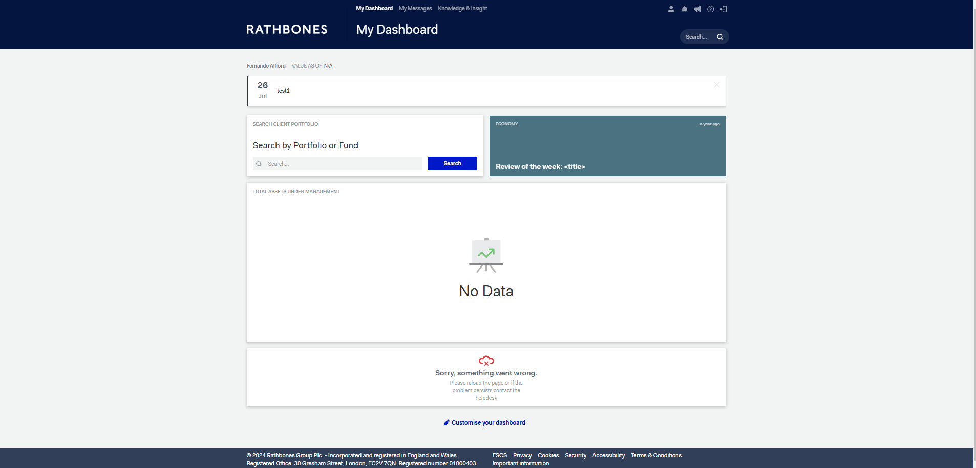 When you log in for the first time, you may notice that the data for your clients is not yet available. This is because we're providing you with early access whilst we complete the transfer process. Initially, the screen you see will appear limited or incomplete. Rest assured; this is only a temporary experience. Once your clients' investments are transferred to Rathbones, you’ll regain full visibility and access to all of MyRathbones' powerful features that make the platform a comprehensive tool for managing your clients' wealth.