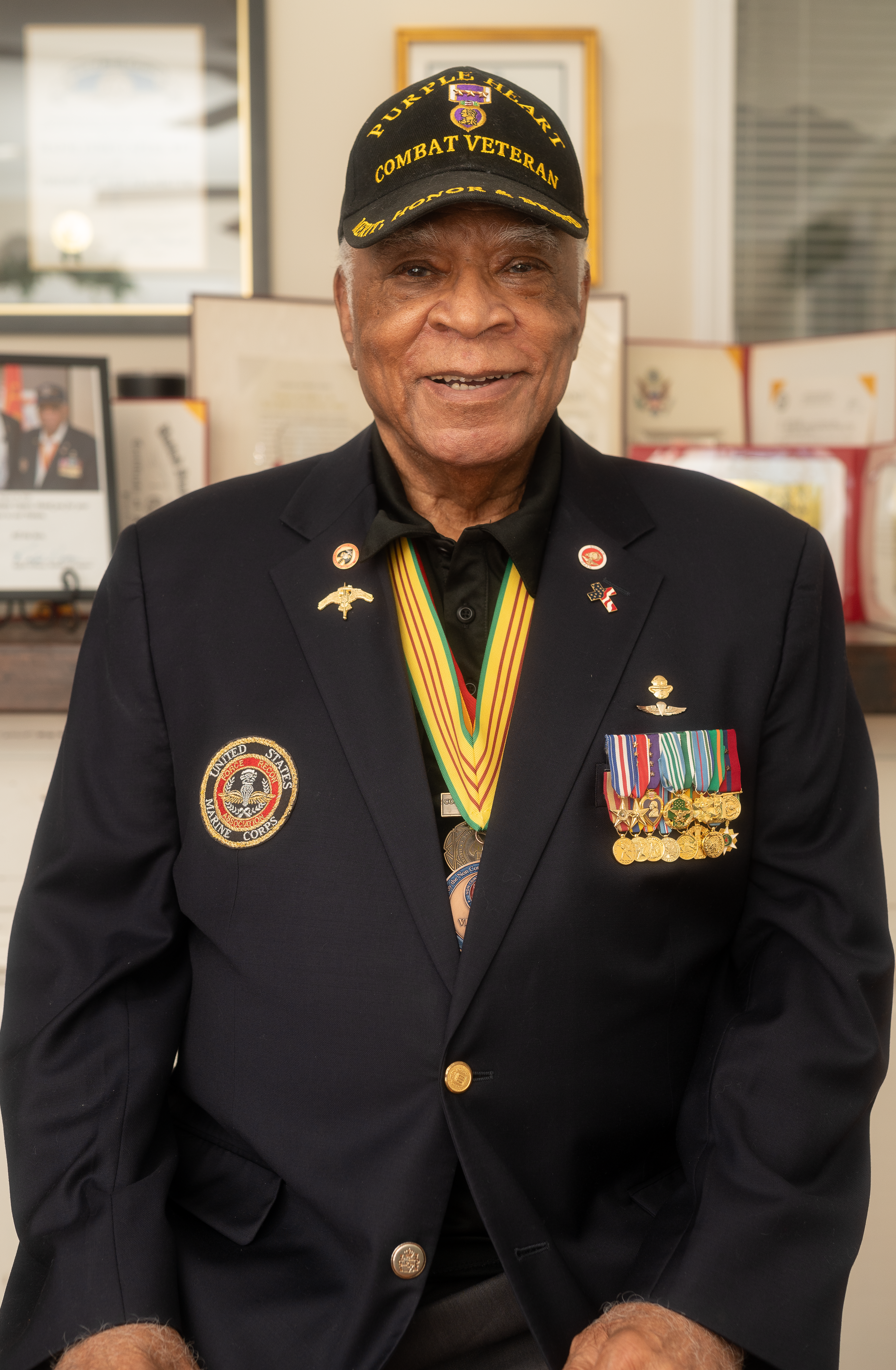 Maj. James Capers never questioned his calling to the Marine Corps. In Vietnam, he led reconnaissance teams through brutal firefights, surviving 19 gunshot wounds, two broken legs, and spending more than a year in recovery. He earned three Purple Hearts, the Silver Star, and two Bronze Stars for valor. Later, as the first Black Marine on a national recruiting poster, he inspired thousands to serve. “I was proud to serve the greatest country in the world,” he says.