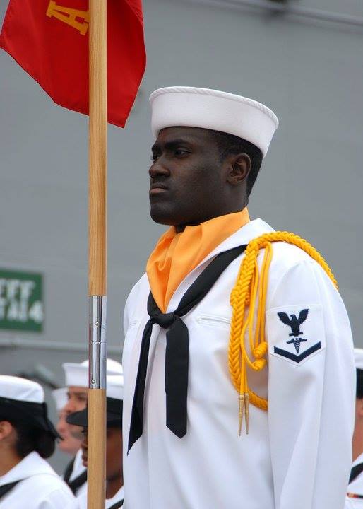 HM2 Adams stated that as an immigrant, he is deeply honored to have served in the world’s finest Navy and privileged to be the first in his family to graduate from college, and with distinction. He believes that part of his success stems from his upbringing in Ghana, where he was taught that "life doesn’t give you what you deserve, but what you’re willing to fight for." To this end, he is proud to share that he has traveled the world, lived and worked on three different continents (Africa, Europe, and North America), and speaks multiple languages. More importantly, he has met some of the most incredible people who have influenced his life in countless positive ways. For his service to his country, HM2 Amisu has been awarded the National Defense Service Medal, Global war on Terrorism Service Medal, Good Conduct Medal (2), Navy and Marine Corps Achievement Medal, Navy & Marine Corps Overseas Service Ribbon, Navy Pistol Marksmanship Ribbon, Enlisted Surface Warfare Insignia, and the Flag Officer Letter Of Commendation.