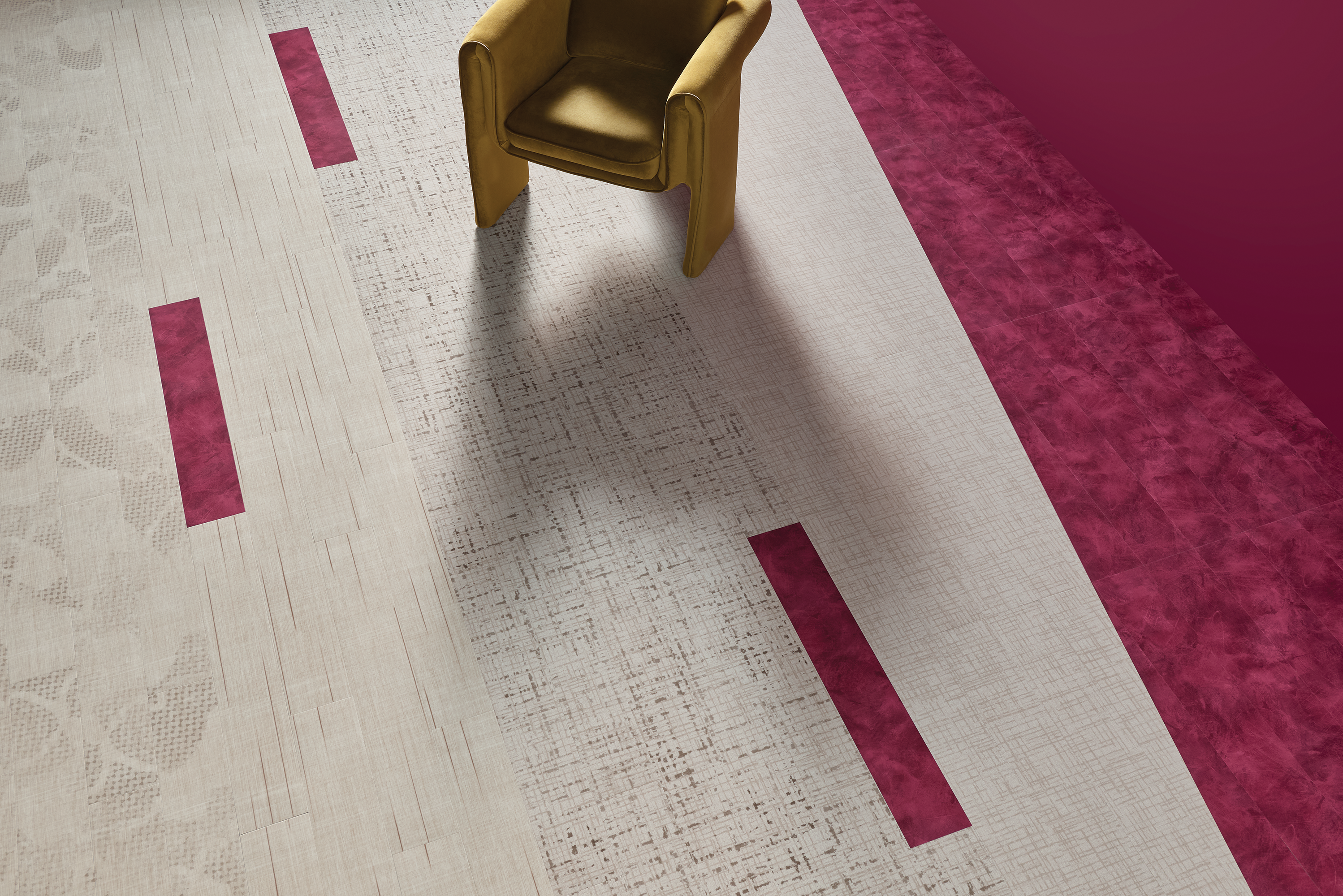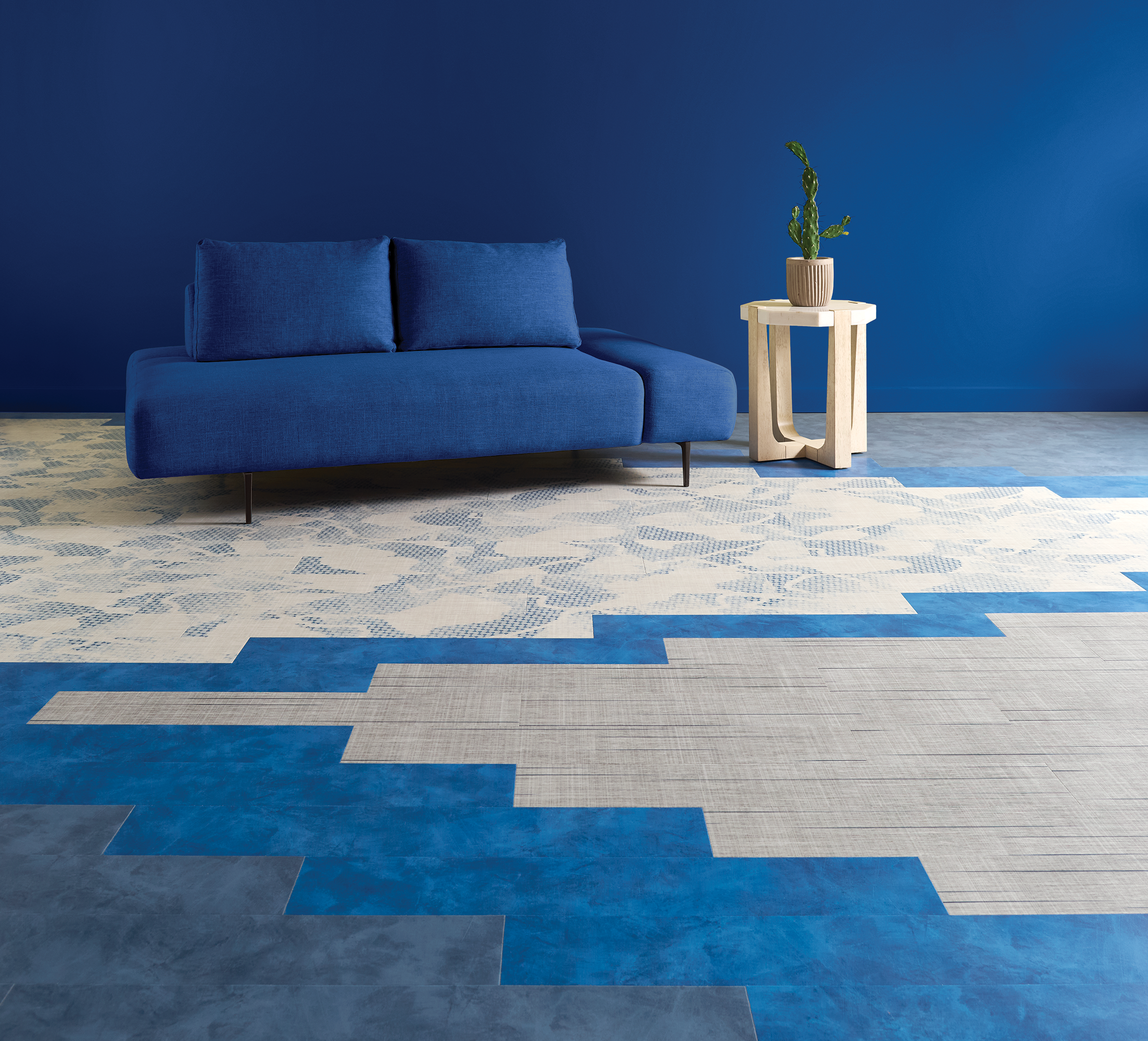 To embark on the adventure of customizing your commercial space, start by selecting one of Armstrong Flooring's distinct base patterns of luxury vinyl tiles—Prism, Mosaic, or Mirage—which are available in nuanced colorways.