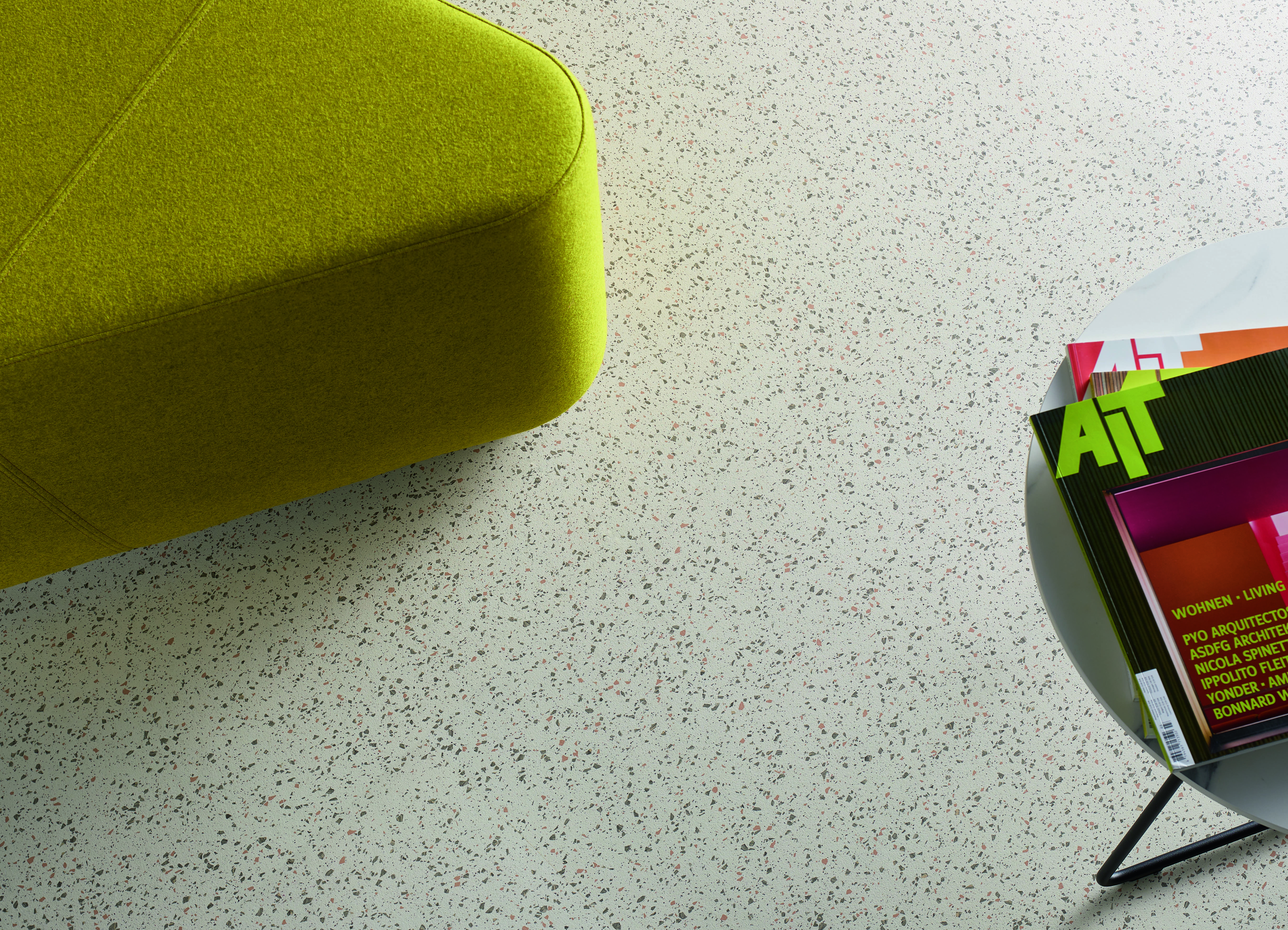 norament pado™ offers a modern take on terrazzo flooring for contemporary, high-function interiors. It features a mosaic-like structure with a mix of color chips embedded in a high-performance material – rubber.