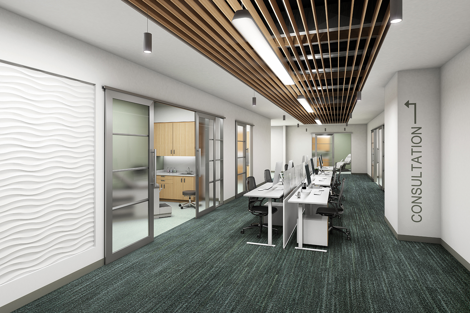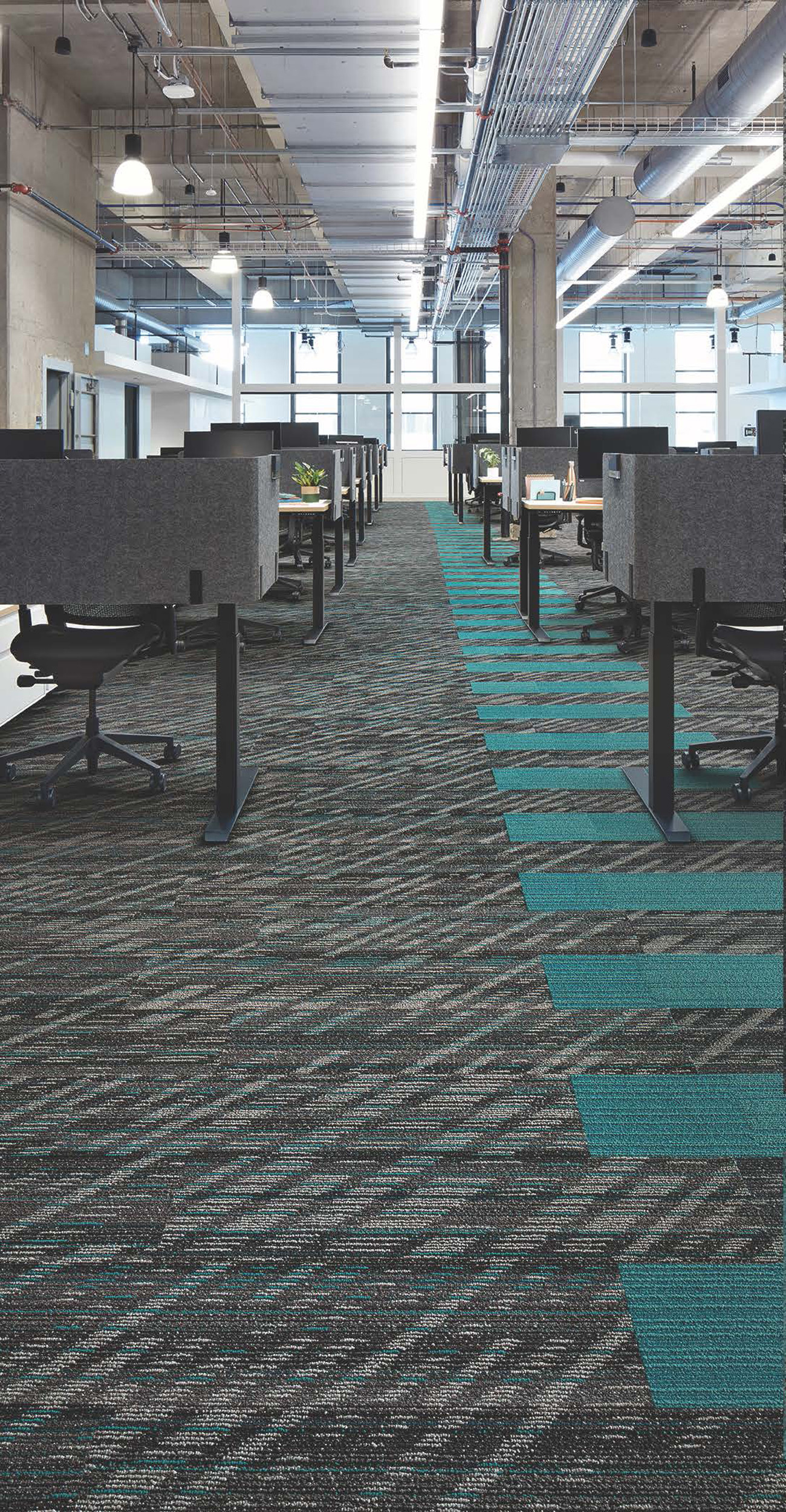 Plank-style carpet tile taking inspiration from granite seams
