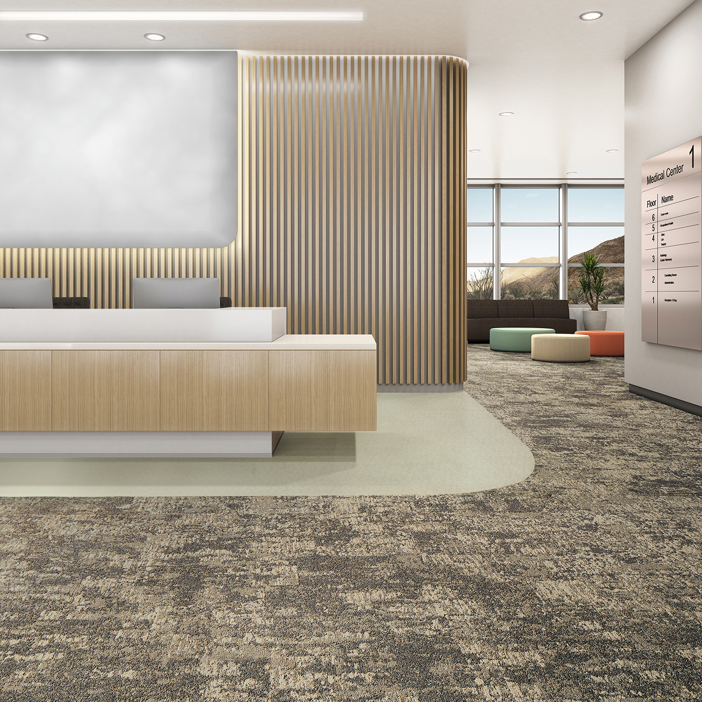 Inspired by the restorative qualities found within a desert landscape, Desert Scapes is a biophilic flooring collection of LVT, vinyl sheet and carpet tile developed to work together and deliver a cohesive look.