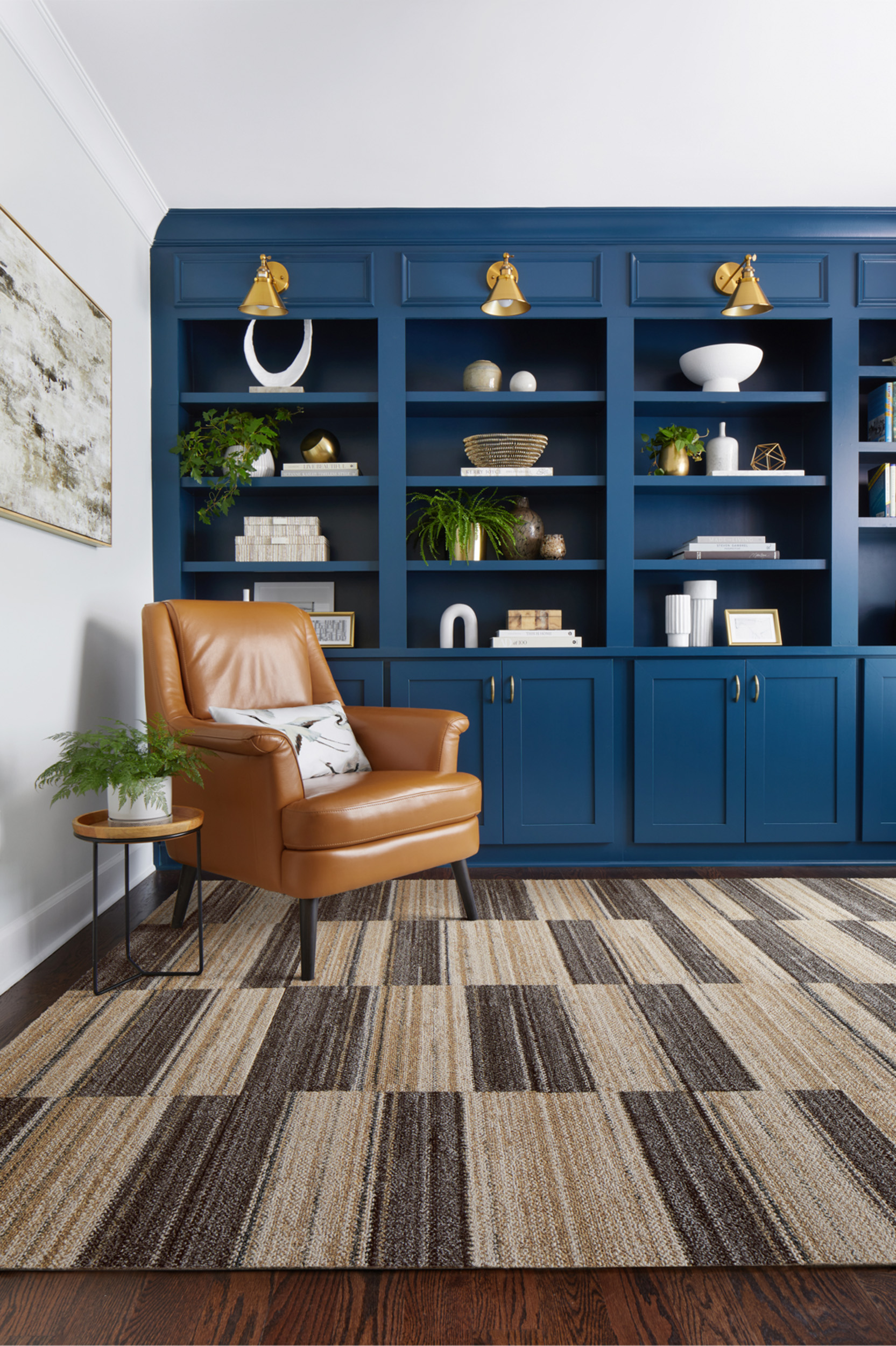 Plank-style carpet tile exploring dappled layers