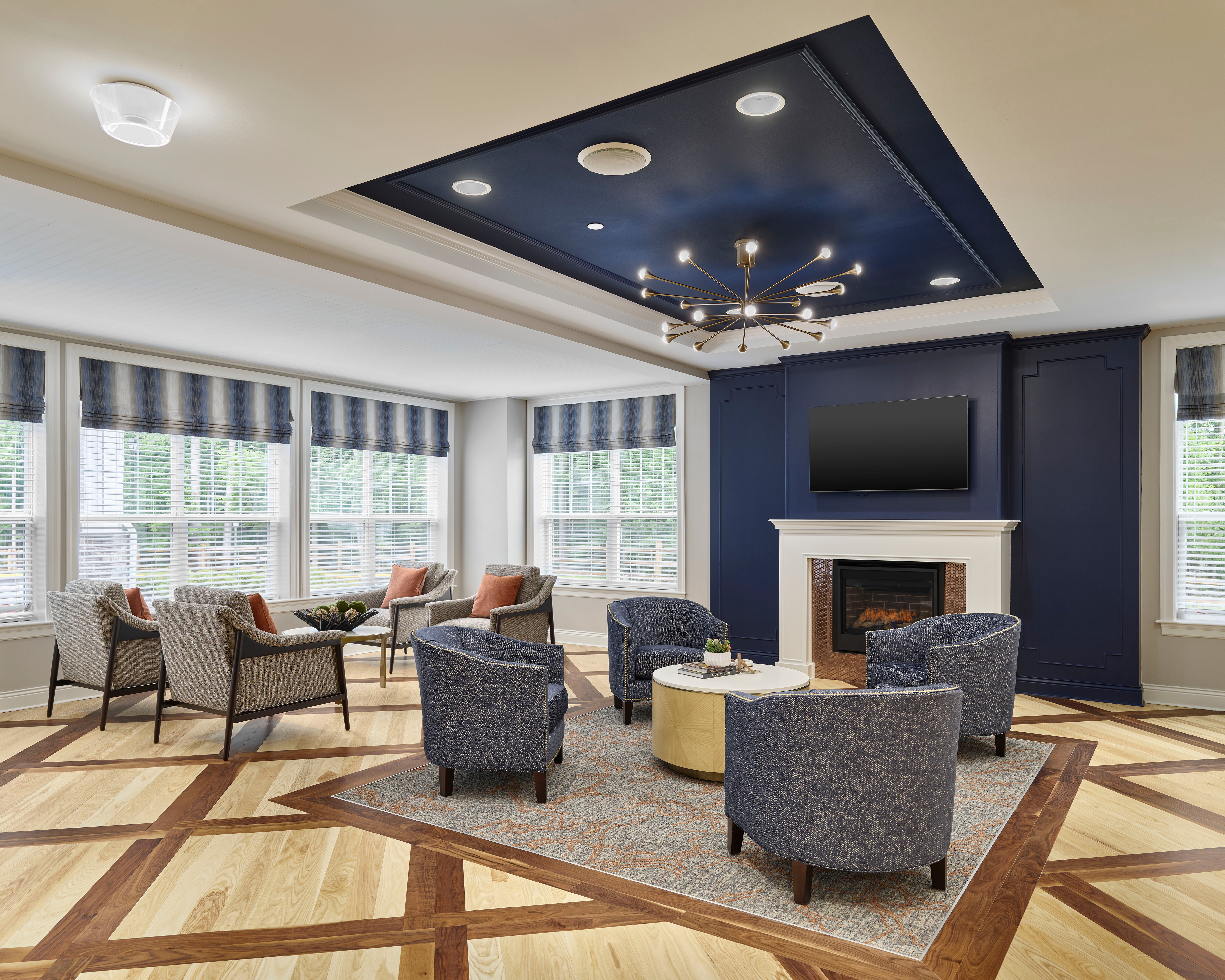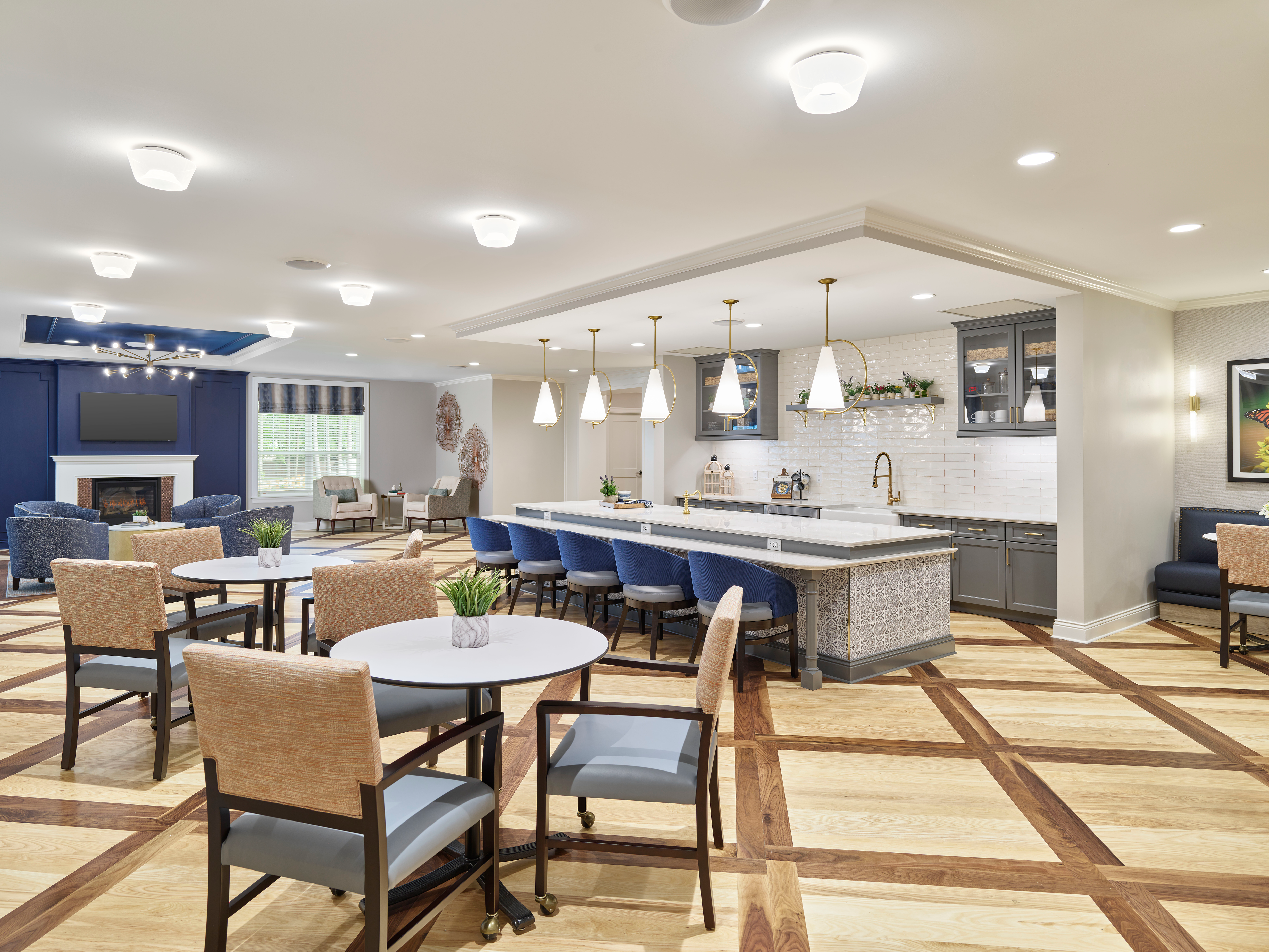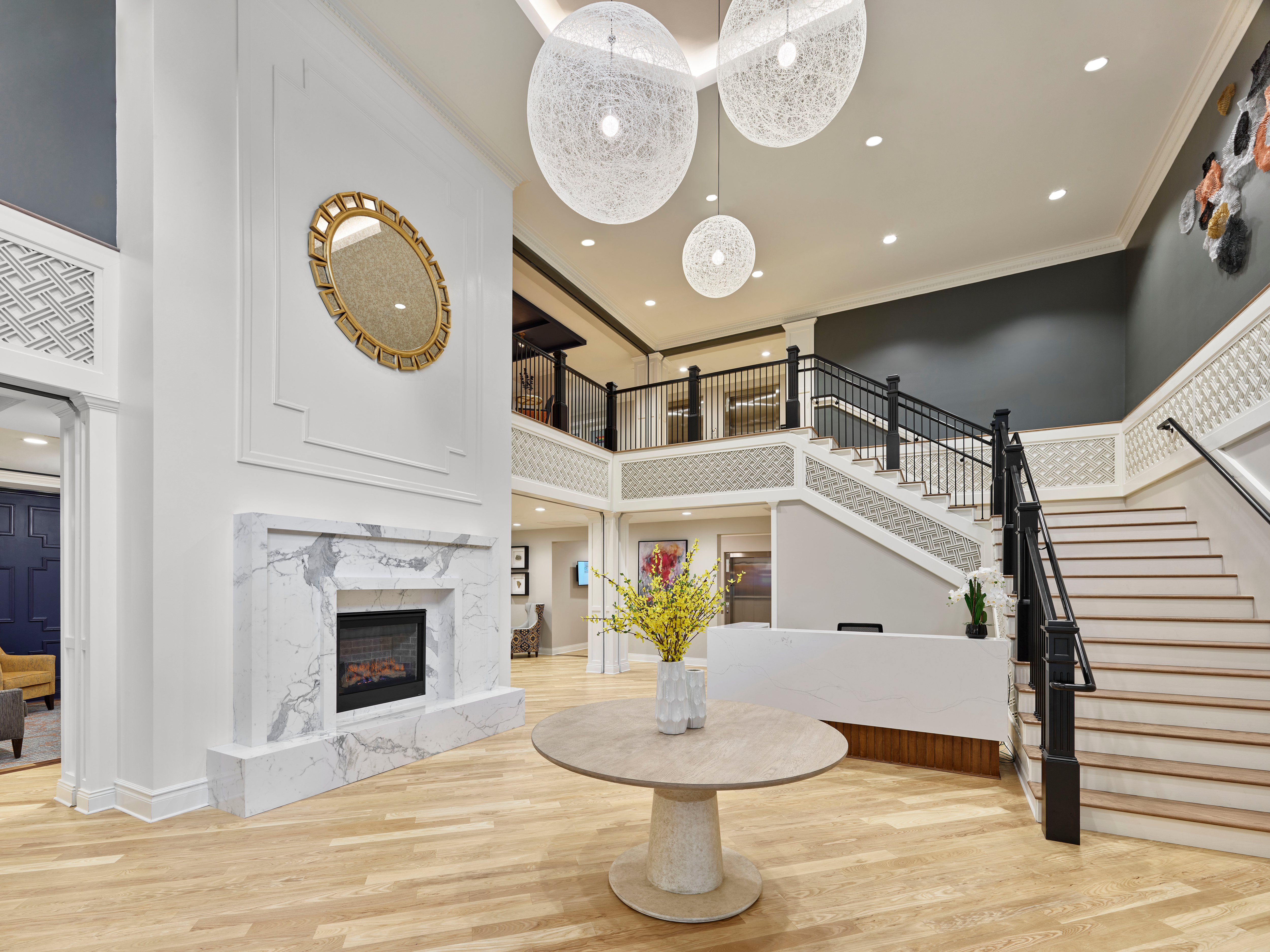 The elegant and enduring combination of Ash Natural and Walnut Natural hardwood flooring elevates the interiors of Arbor Terrace’s Marlton location. They provide an enlivening foundation that complements the space's inviting atmosphere.