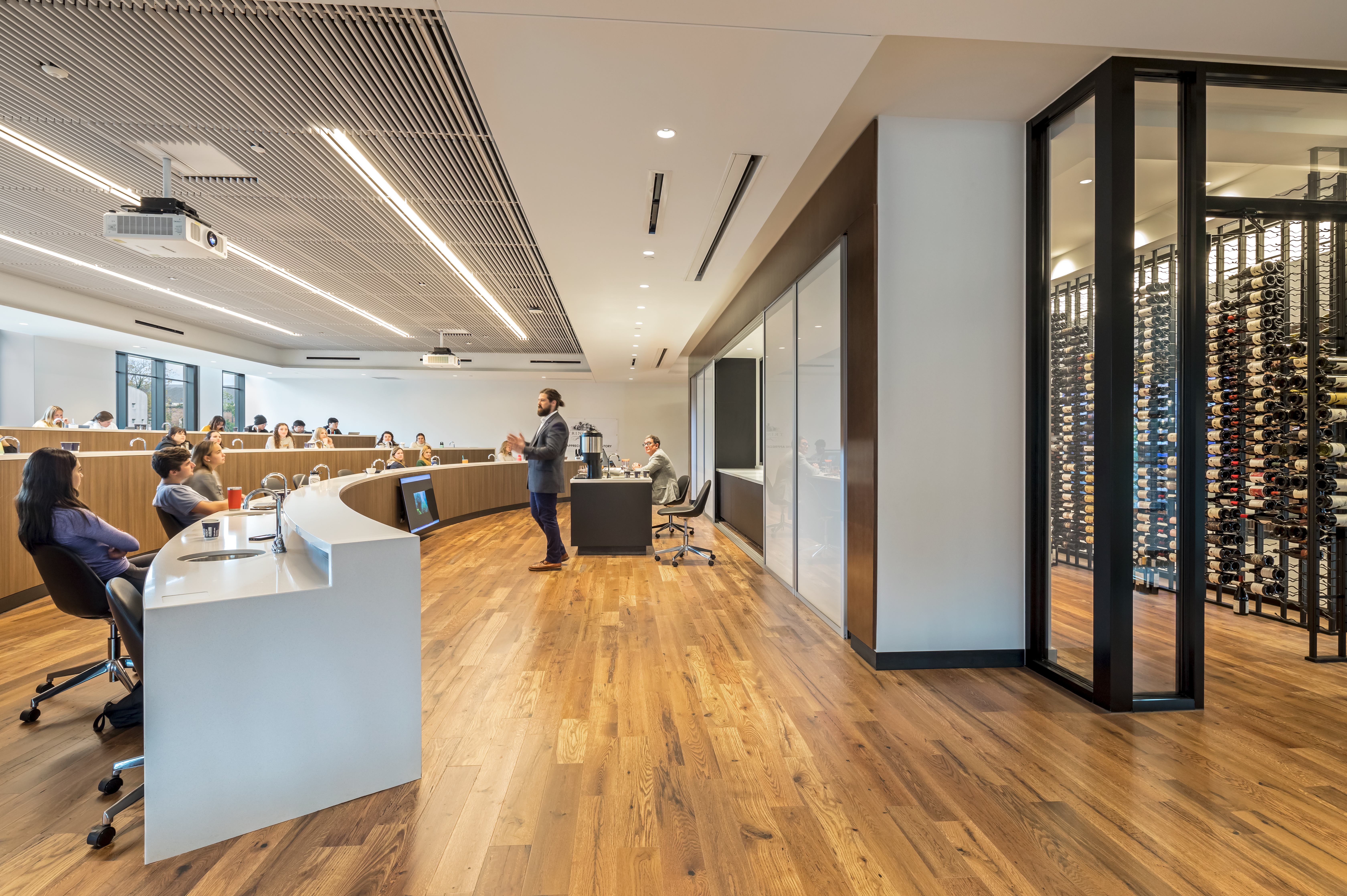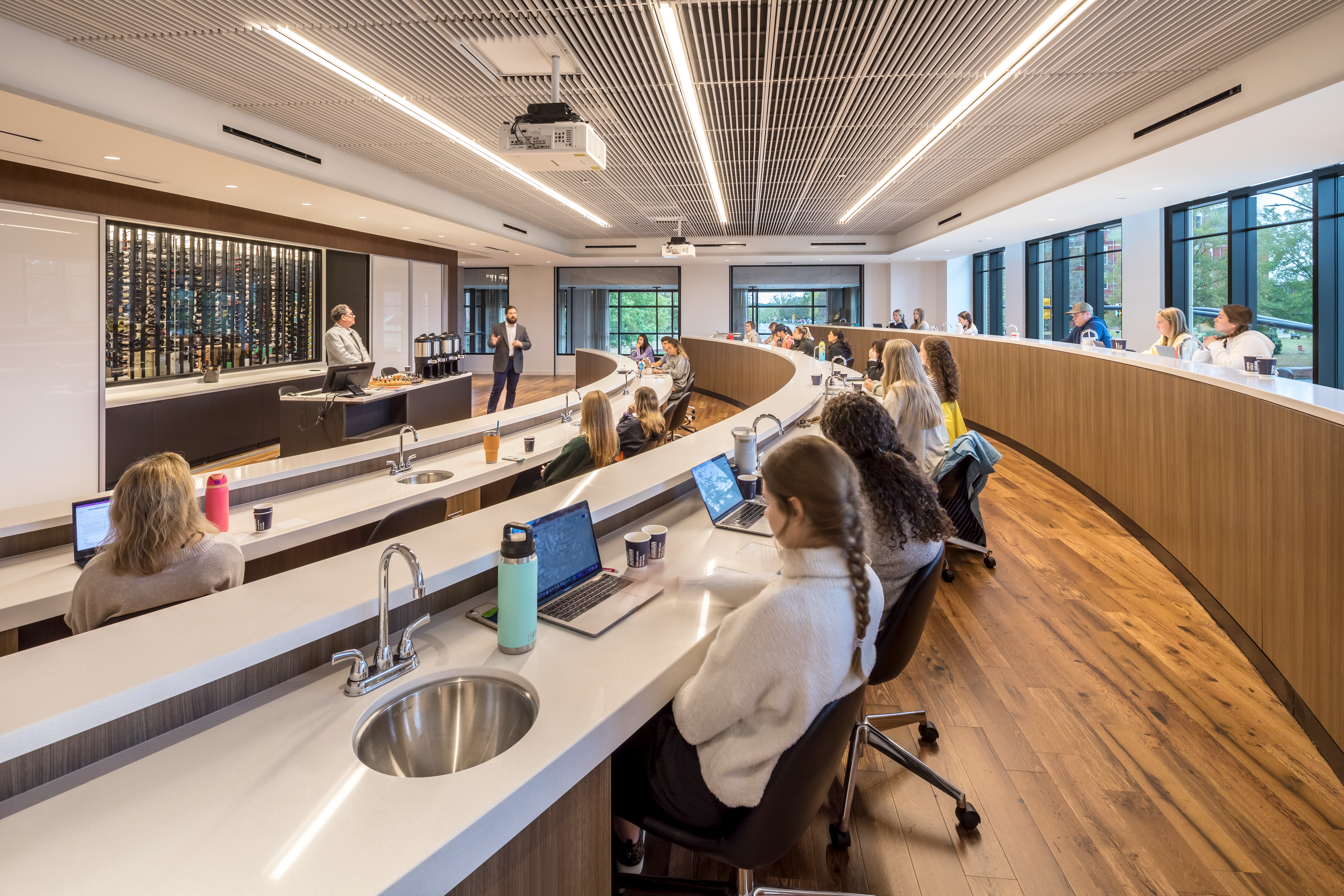 At the Tony and Libba Rane Culinary Institute at Auburn University, the Reclaimed Oak Walnut flooring provides a lustrous and organic foundation that inspires students, grounding the space in natural beauty while enhancing the learning environment for future culinary masters.