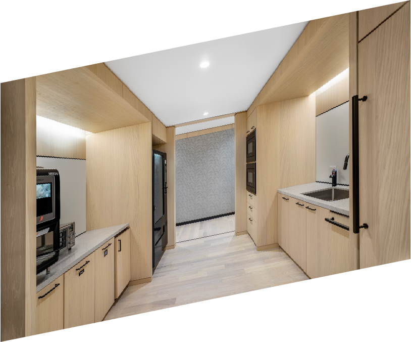The Rift and Quartered White Oak Centennial, laid out in an array of captivating patterns, infuses Dore's New York office with both warmth and a rich tapestry of design — celebrating diversity and transforming the space into a welcoming and vibrant workplace.