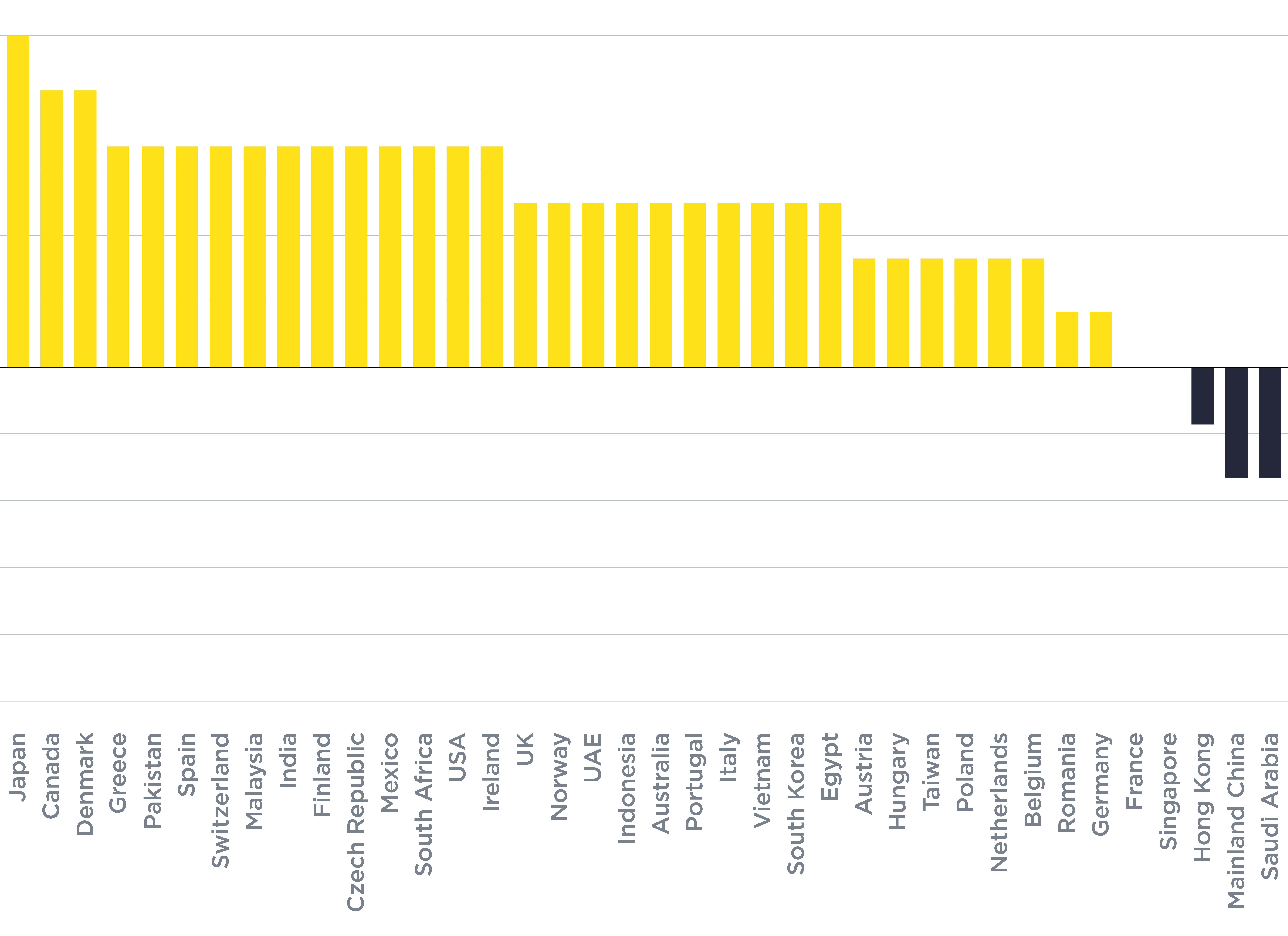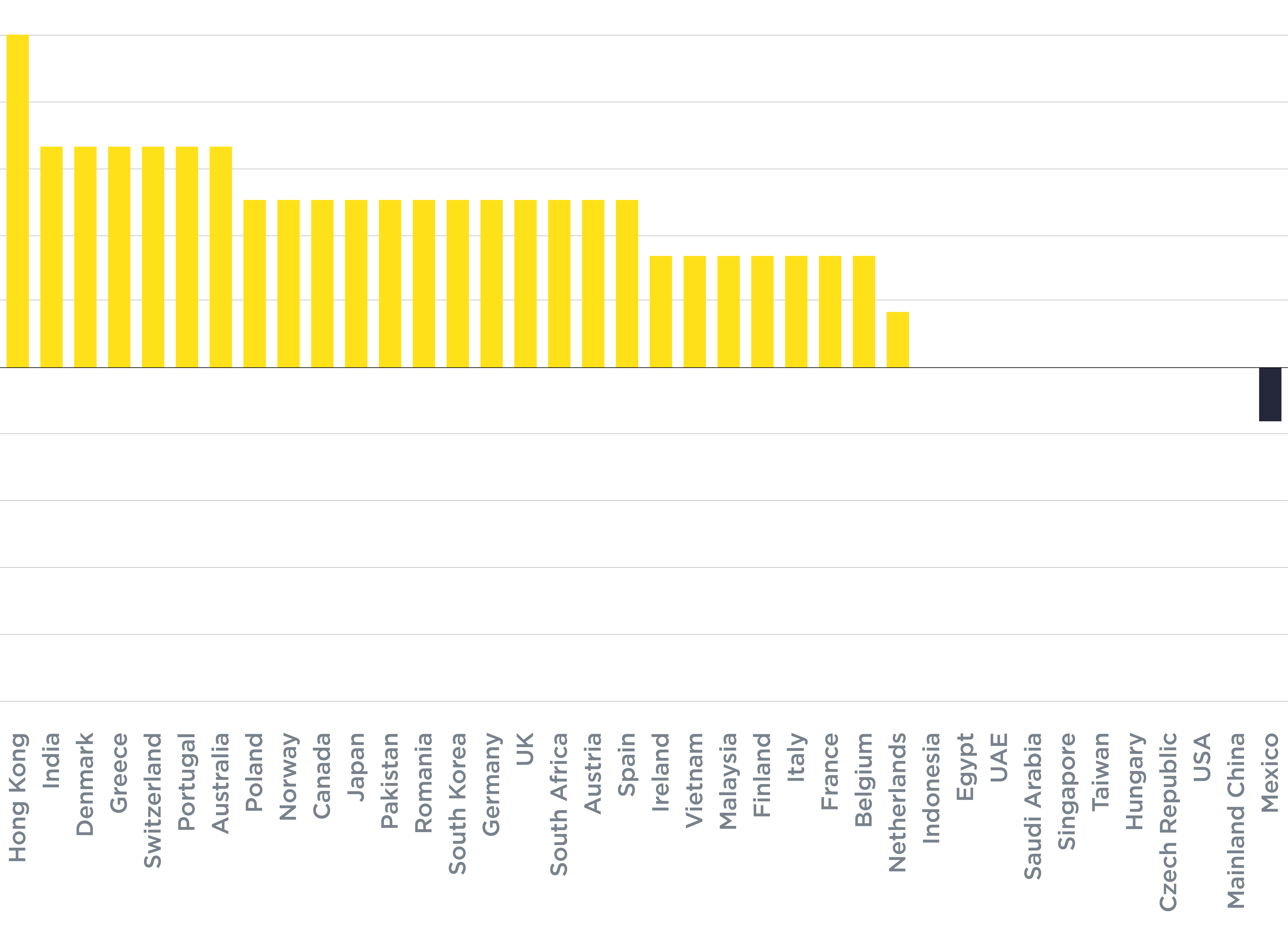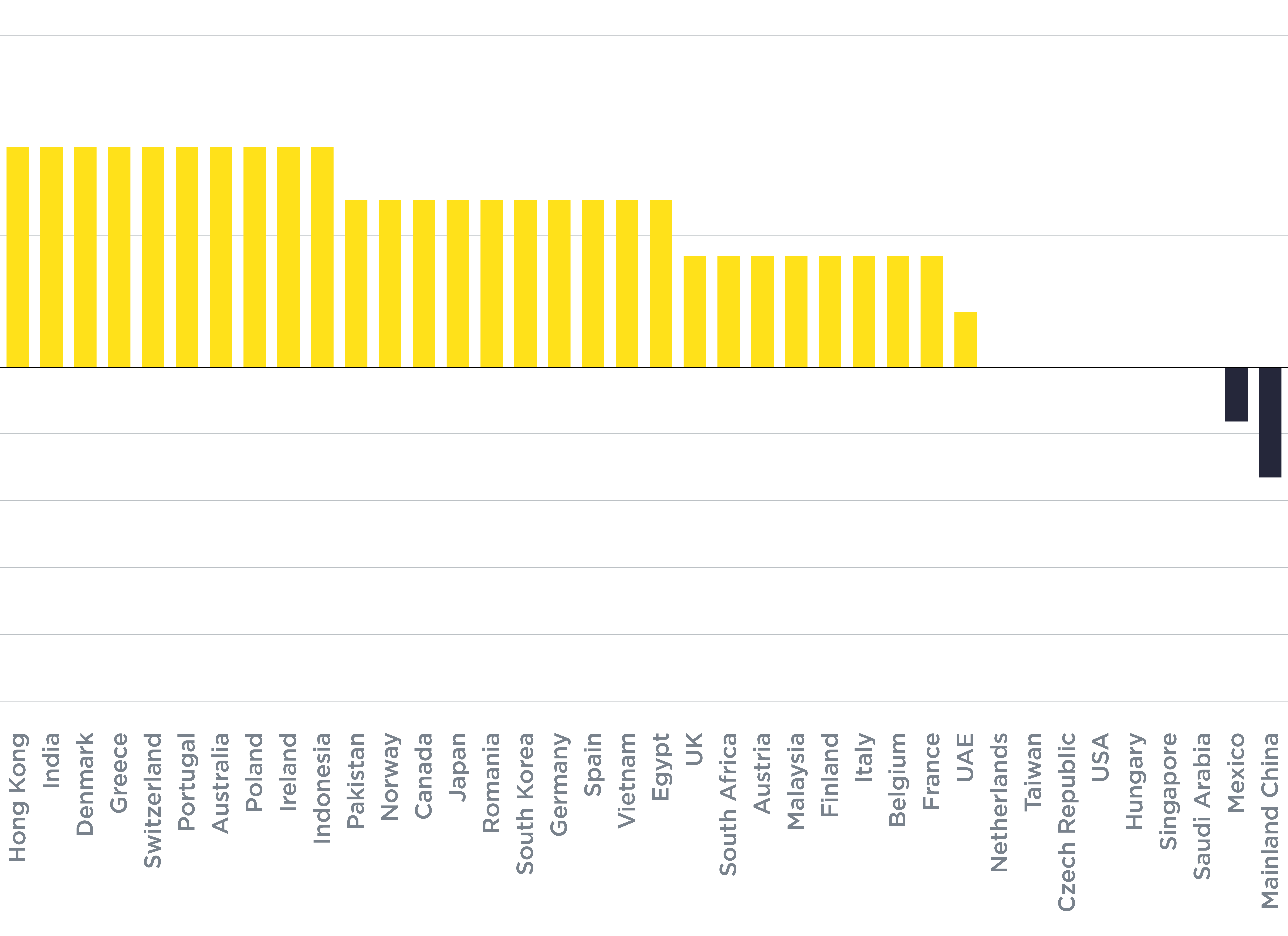 Source: Savills Research. Note: Occupier sentiment is the combined net positive sentiment for both rent and take-up, based on the expectations of Savills researchers across 39 markets. On the y axis, 1 represents the most strongly positive sentiment, while -1 reflects the strongest negative sentiment, and 0 represents a neutral outlook for 2026.