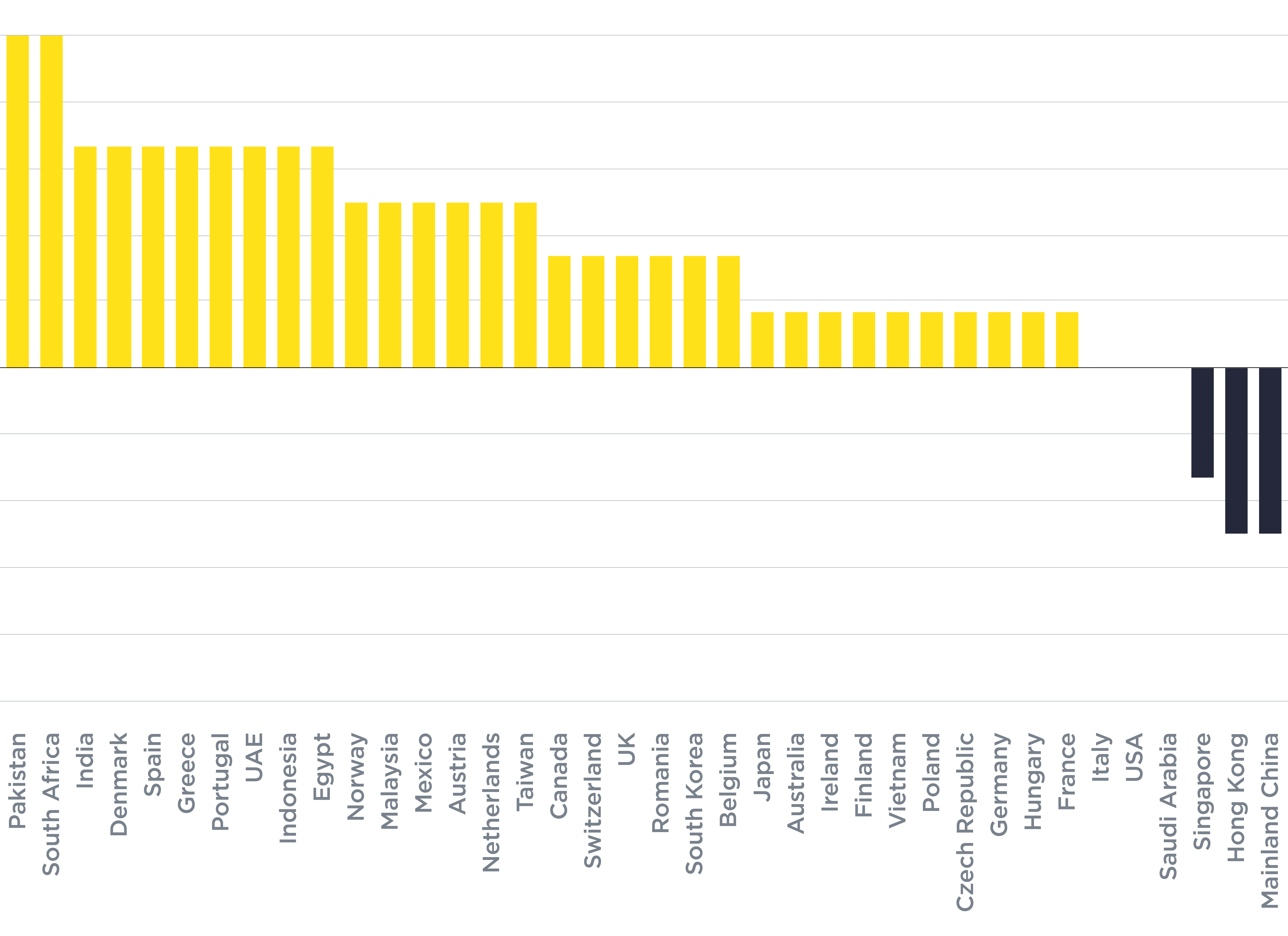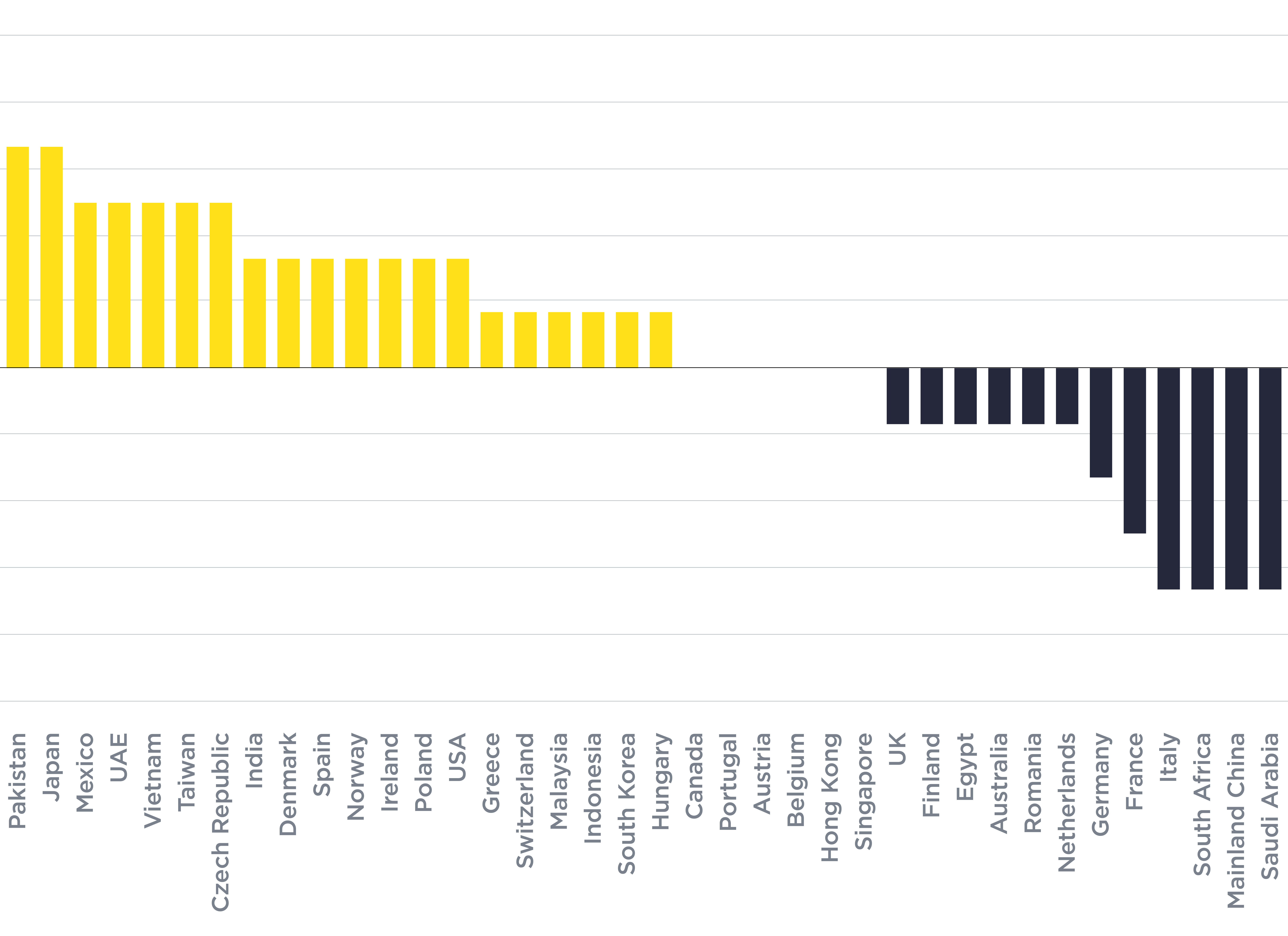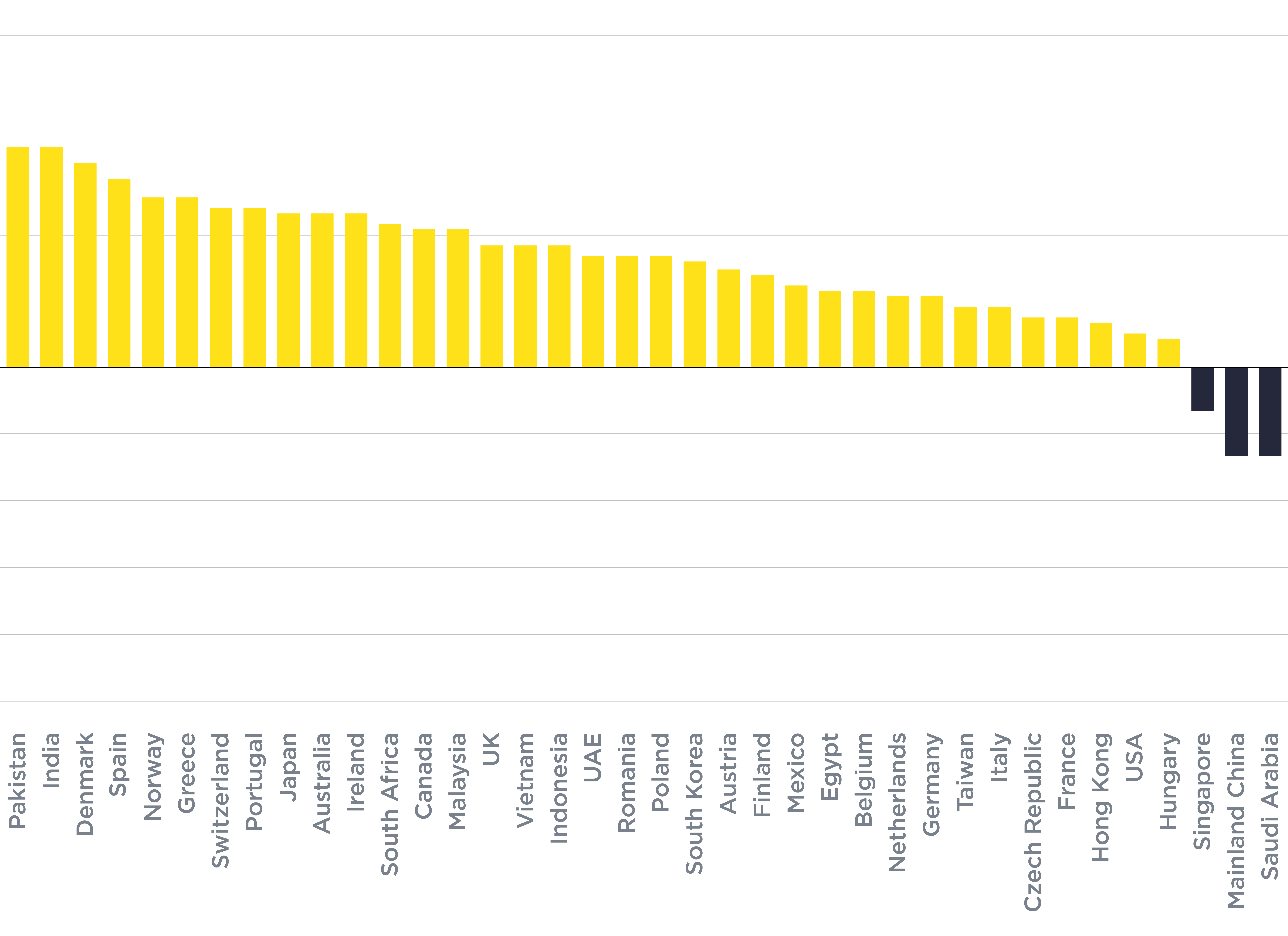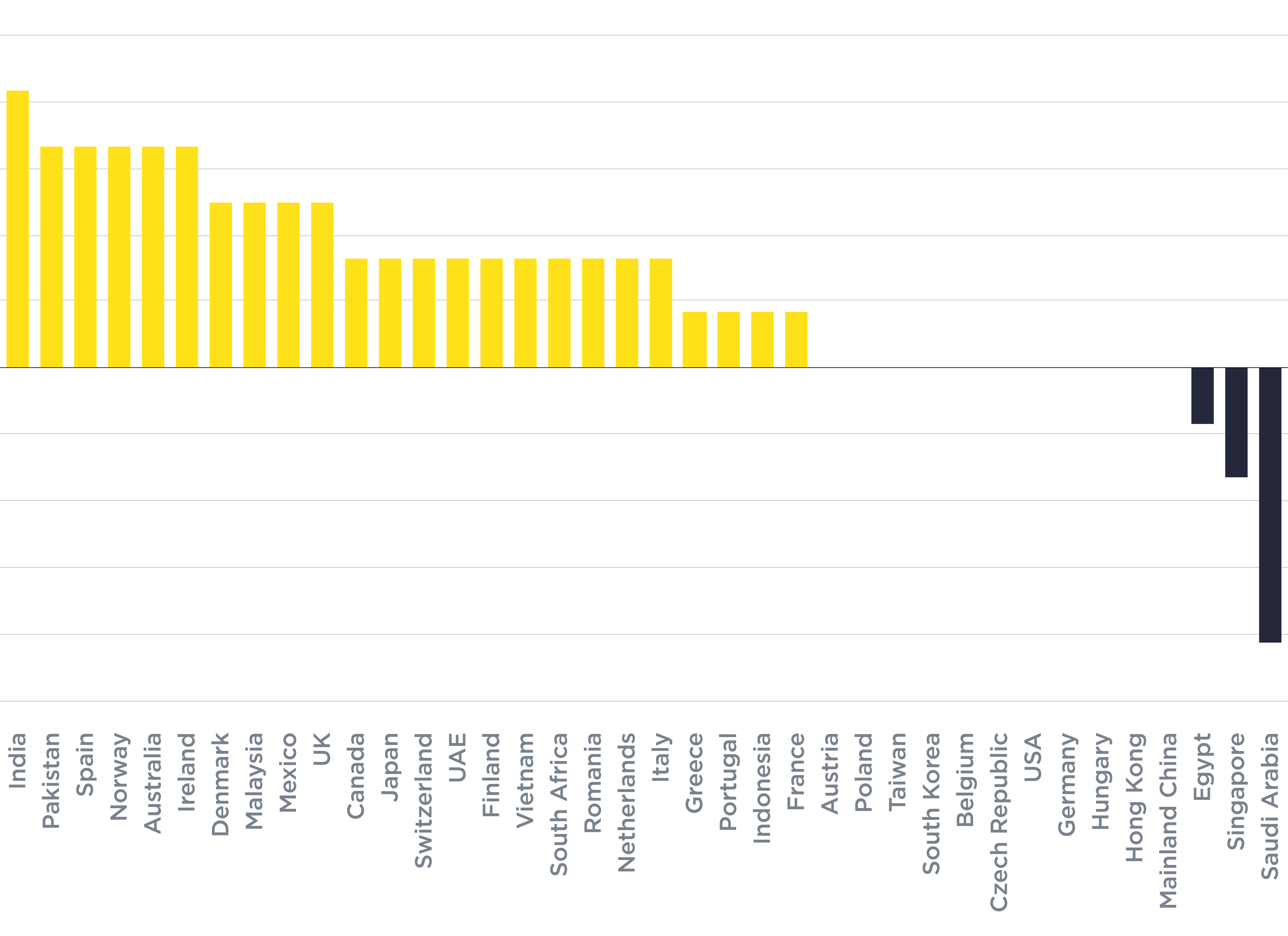 Source: Savills Research. Note: Occupier sentiment is the combined net positive sentiment for both rent and take-up, based on the expectations of Savills researchers across 39 markets. On the y axis, 1 represents the most strongly positive sentiment, while -1 reflects the strongest negative sentiment, and 0 represents a neutral outlook for 2026.