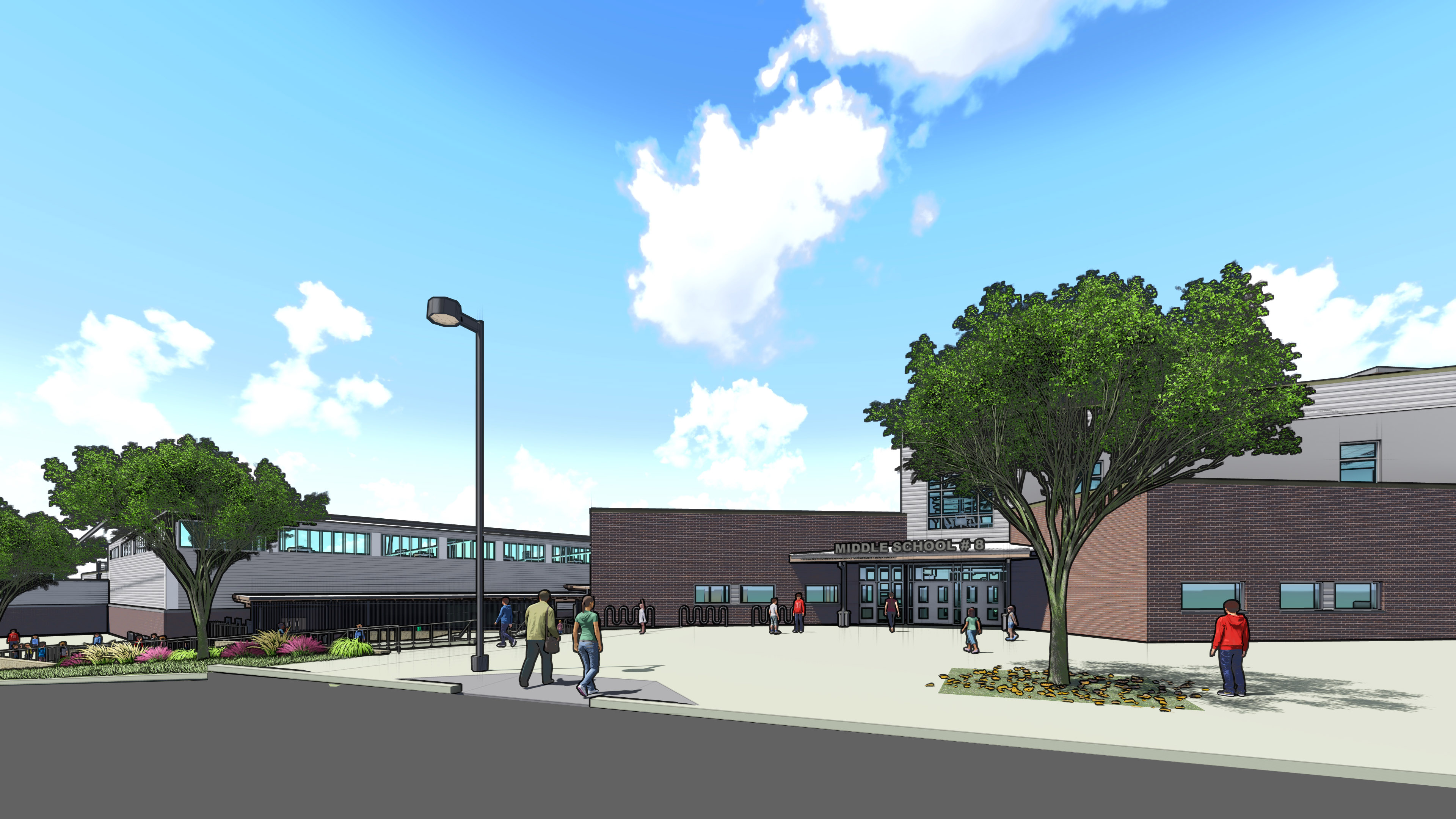 $79.9 million, 120,000-SF new construction for a middle school which also includes the construction of sports facilities such as a baseball field, softball field, running track, tennis court, football field, sports storage, and restroom building. The site construction includes heavy-duty pavement for fire and school bus lanes and light-duty pavement for automobile parking areas. Site includes various utility connections including water, sanitary, electrical and gas connection to the local utility providers. This includes the extension of an existing effluent line from the south side of the property to the north side of the property.